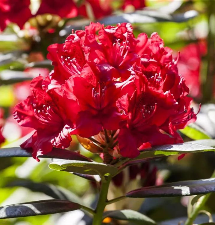 Blüte: Leuchtend karminrot, weiße Staubfäden; Mai-Juni.