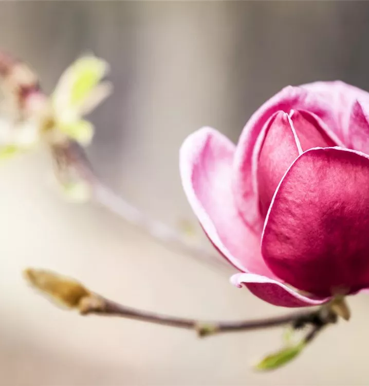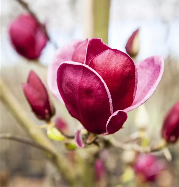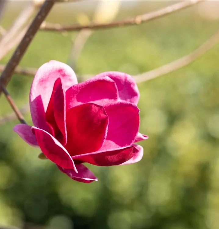 Blüte: Rot-violett, schalenförmig, duftend; April - Mai.