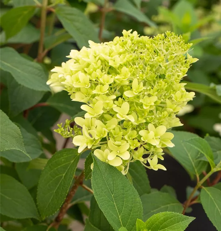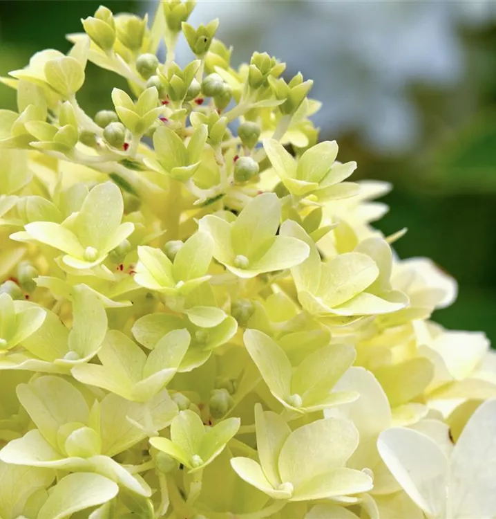 Blüte: Erst hellgrün, dann schneeweiß, rosa verblühend; Juli - Sept. Wuchs: Aufrecht; 0,8 - 1,2 m hoch.