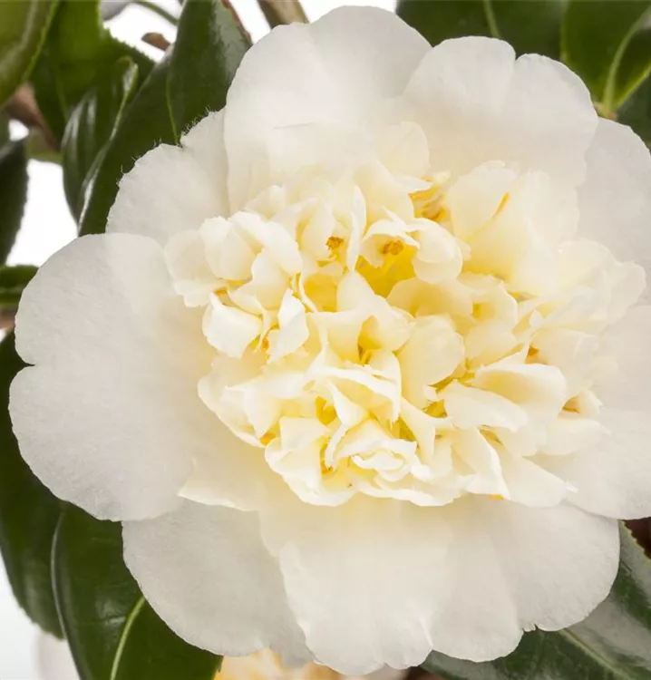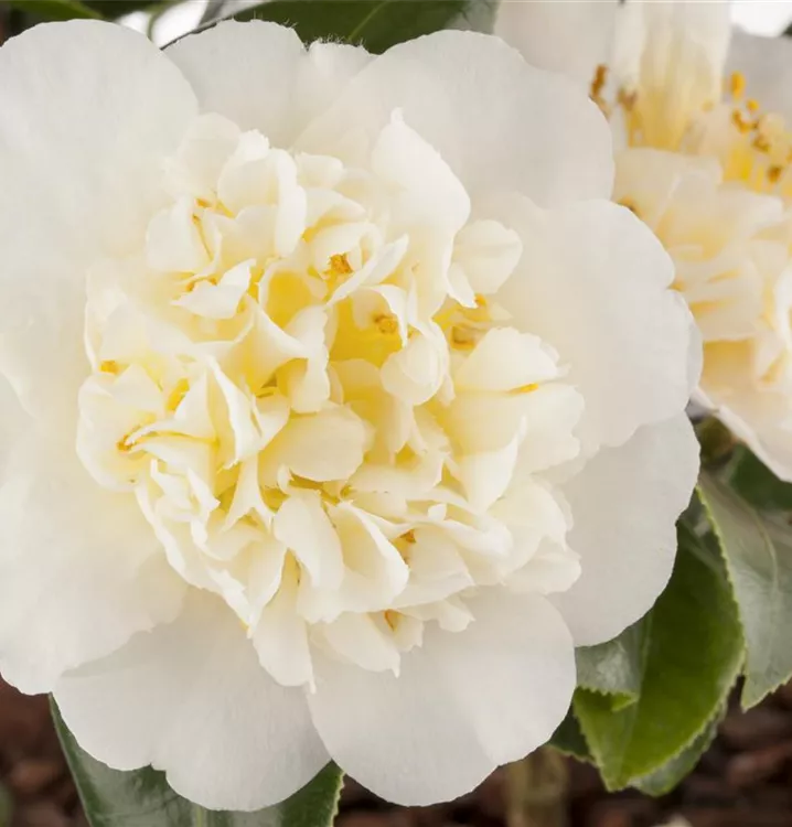 Blüte: Zartgelb, außen weiß, gefüllt,anemonenartig, groß; Febr. - Mai. Immergrün. Wuchs: Buschig; 1,5 - 2 m hoch.