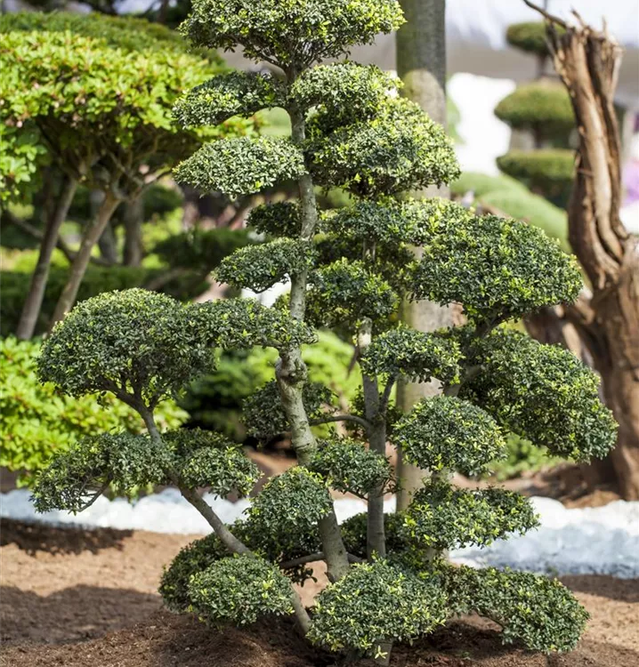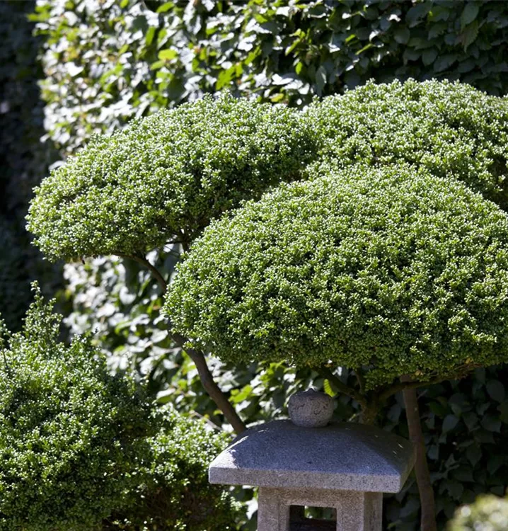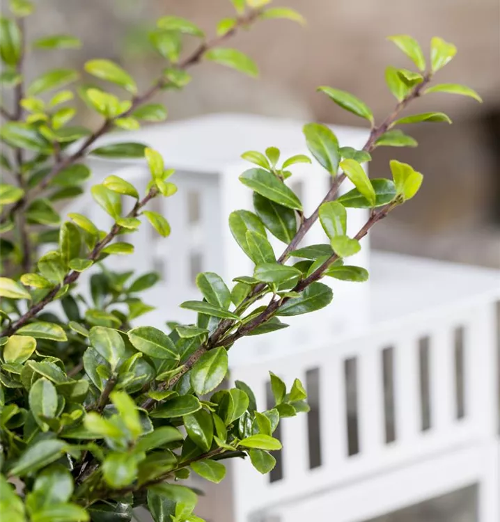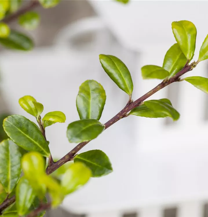 Blatt: Dunkelgrün, immergrün (Bux-Ersatz). Frosthart!