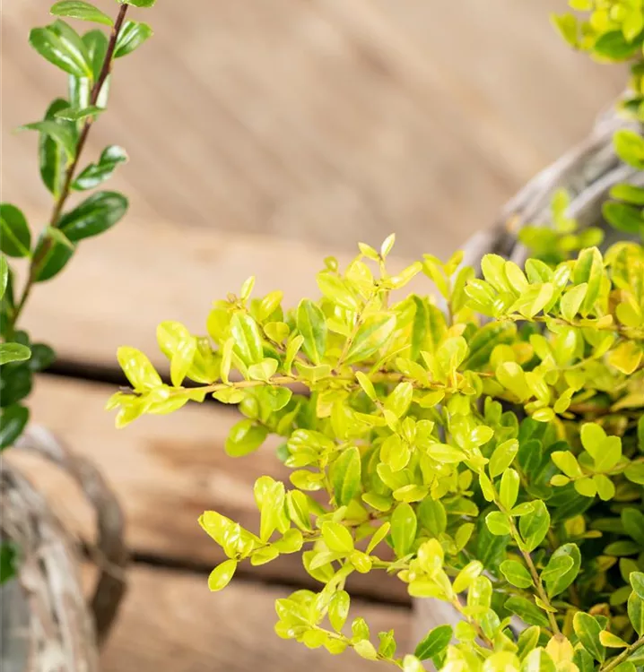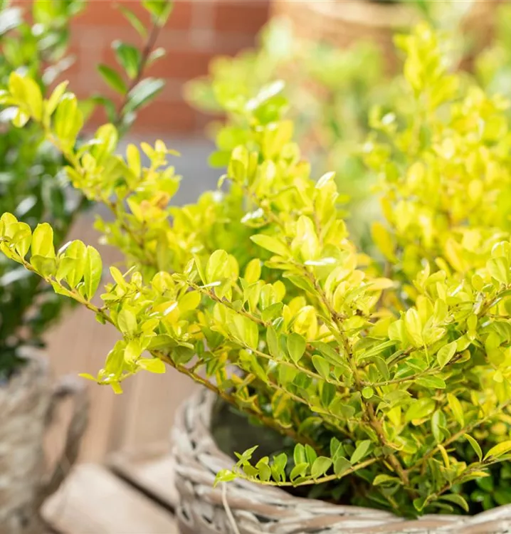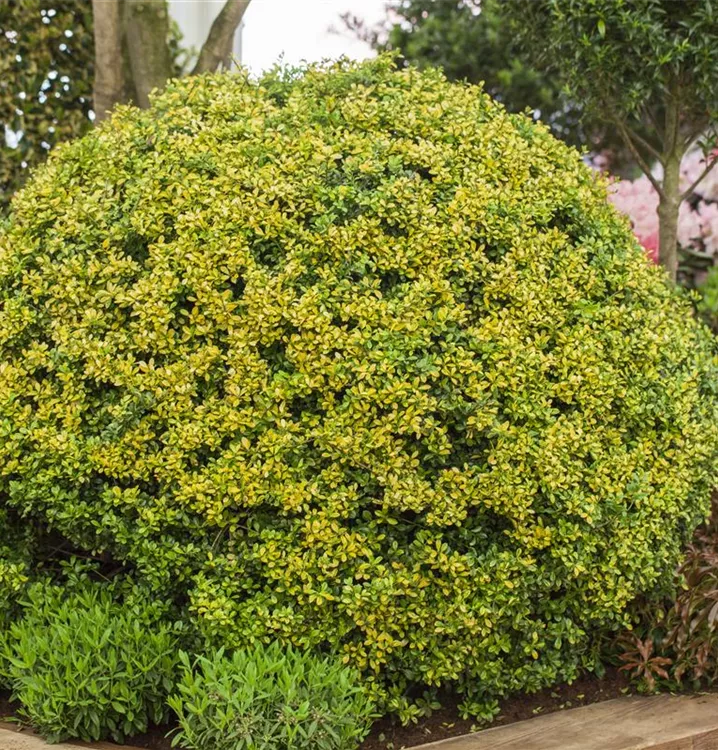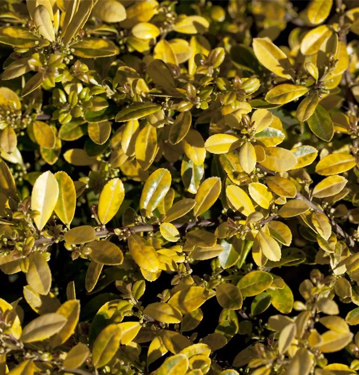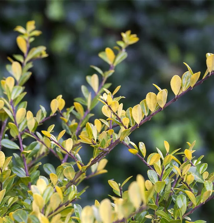 Laub: Goldgelb bis gelbgrün; immergrün. Wuchs: Niedrig, breit ausladend. 60 - 80 cm hoch (10-15 cm p.a.)