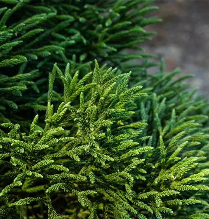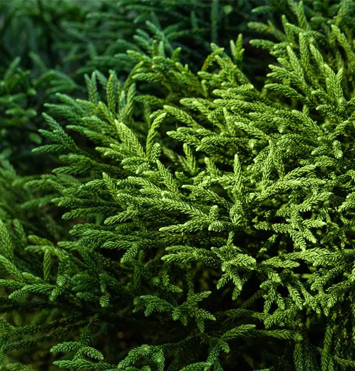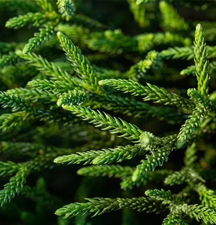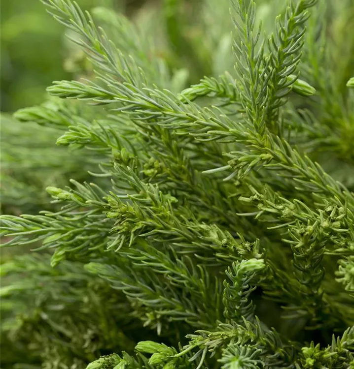 Nadeln: Hellgrün, bronze, zugespitzt; immergrün.