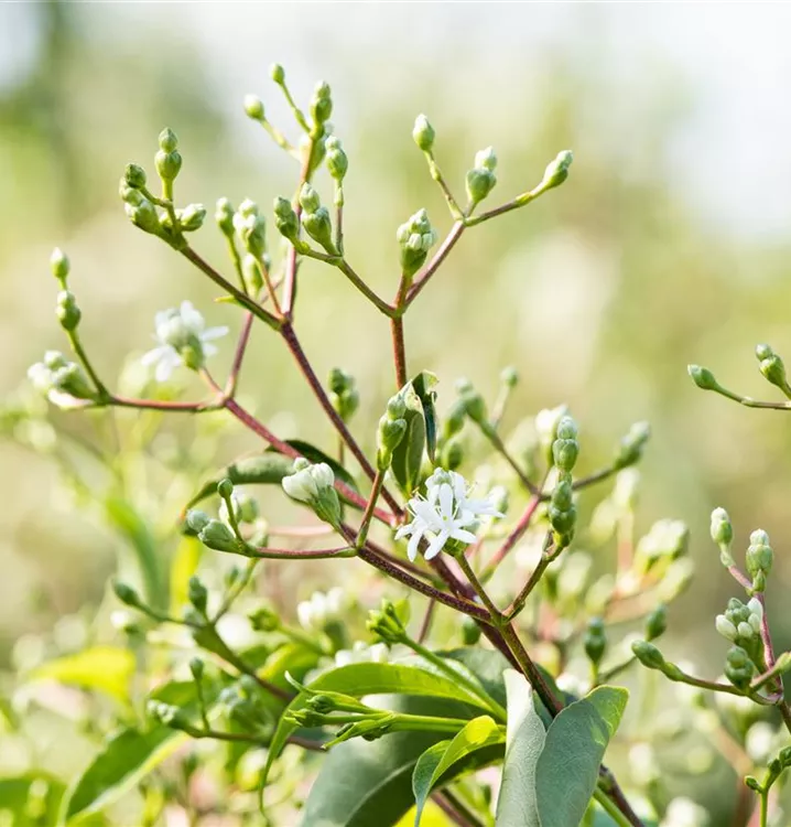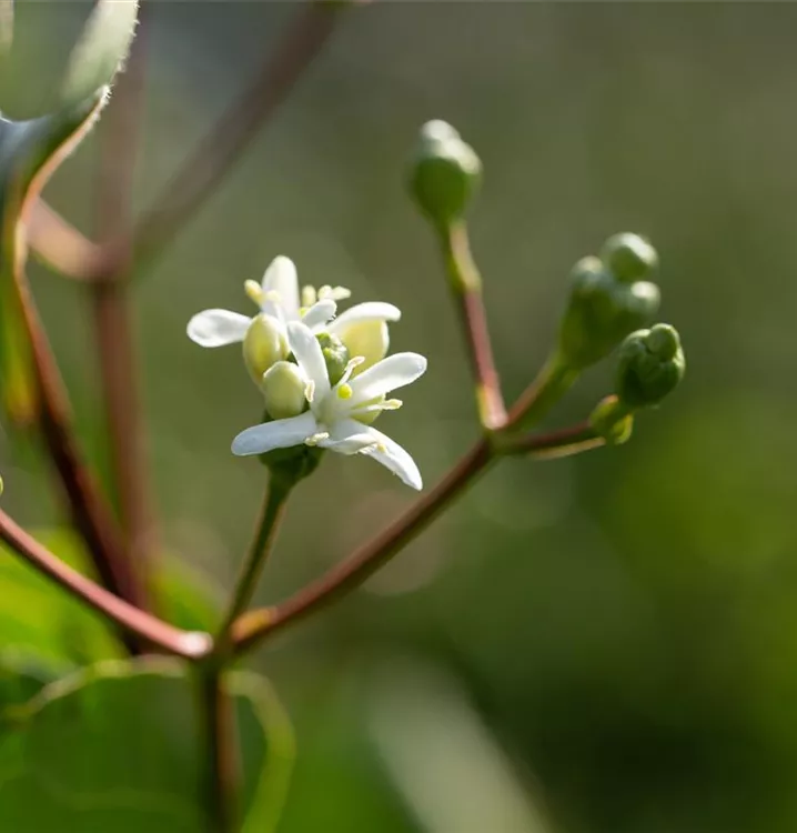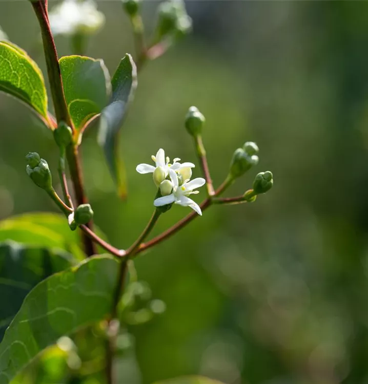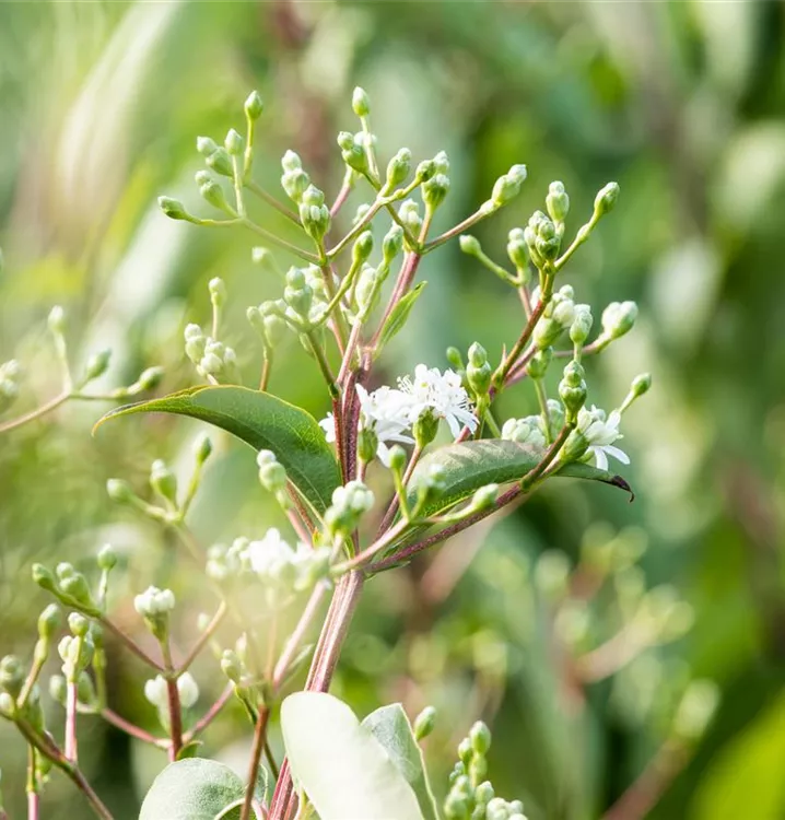 Blüte: Weiß, starker Duft; Aug. - Nov. (Vorblüte Juni).