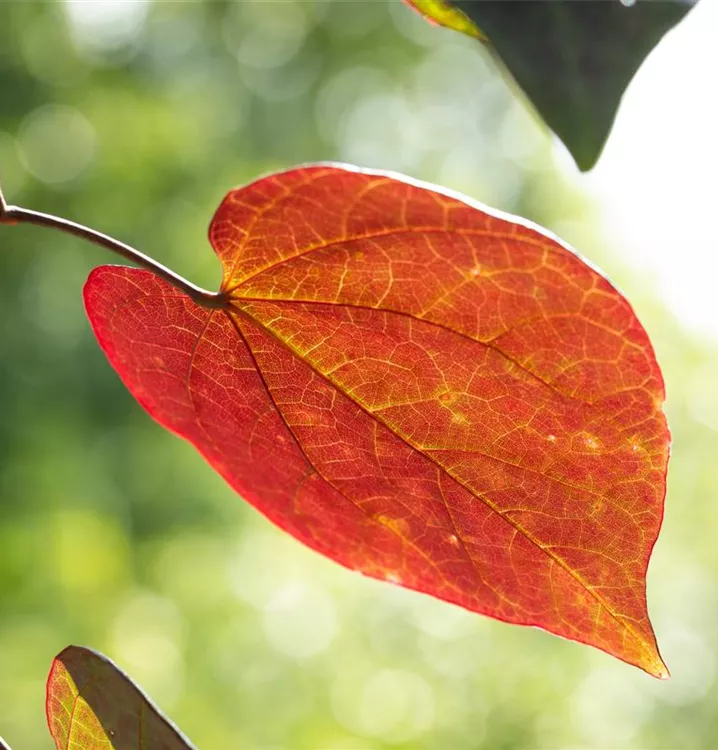 Blüte: Pink; April - Mai. Laub: Rot, gelb, herzförmig.