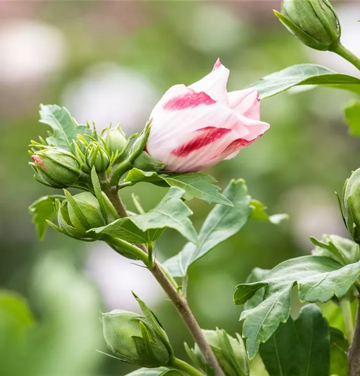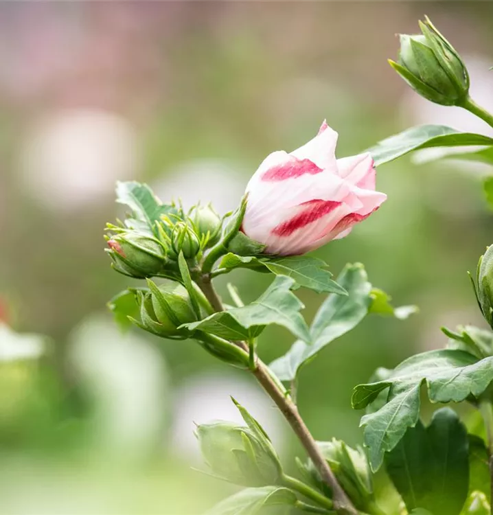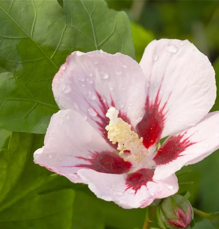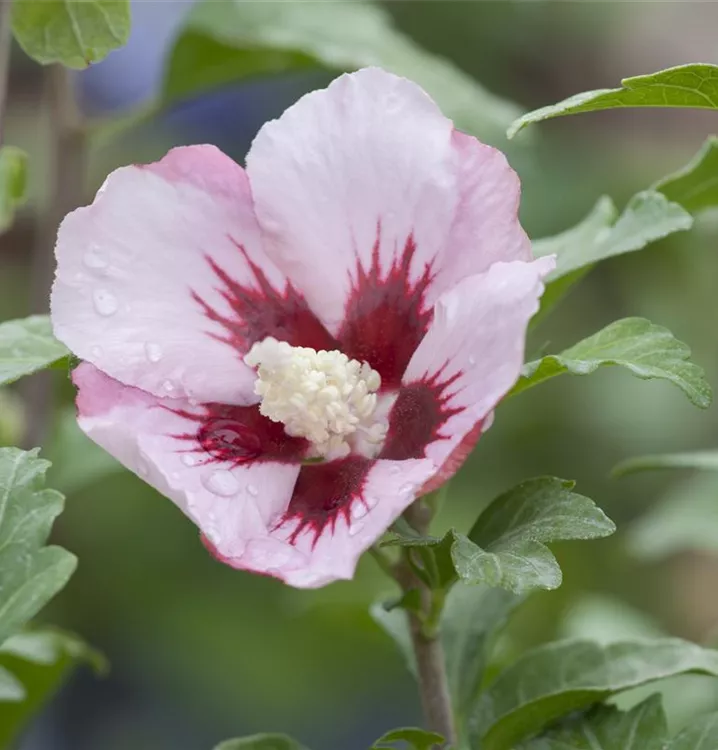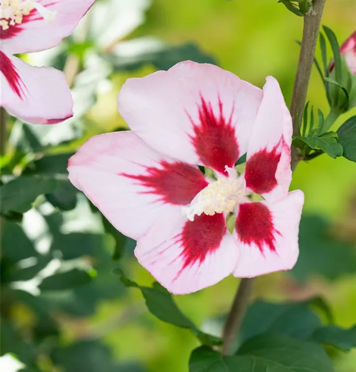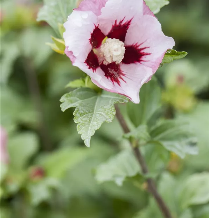Blüte: Hellrosa, Auge karmin, kaum Duft; Juli -September.