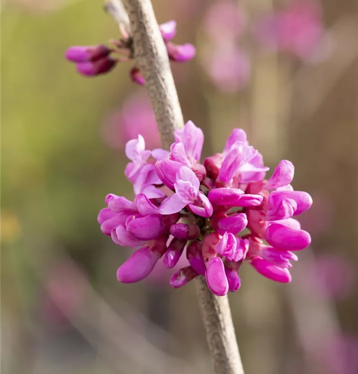 Blüte: Violettrosa, reichblühend; April - Mai. Wuchs: Auf-