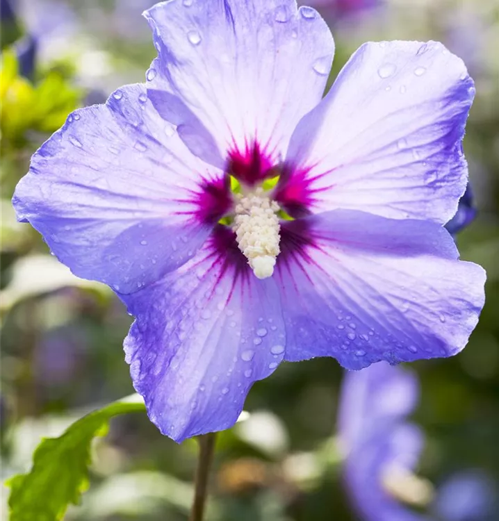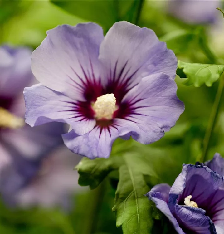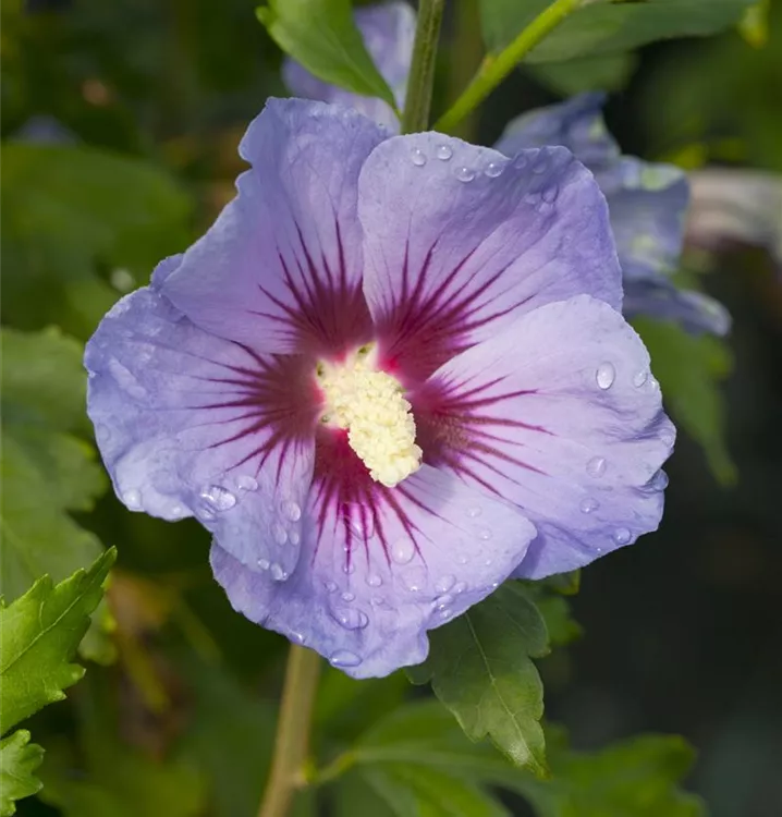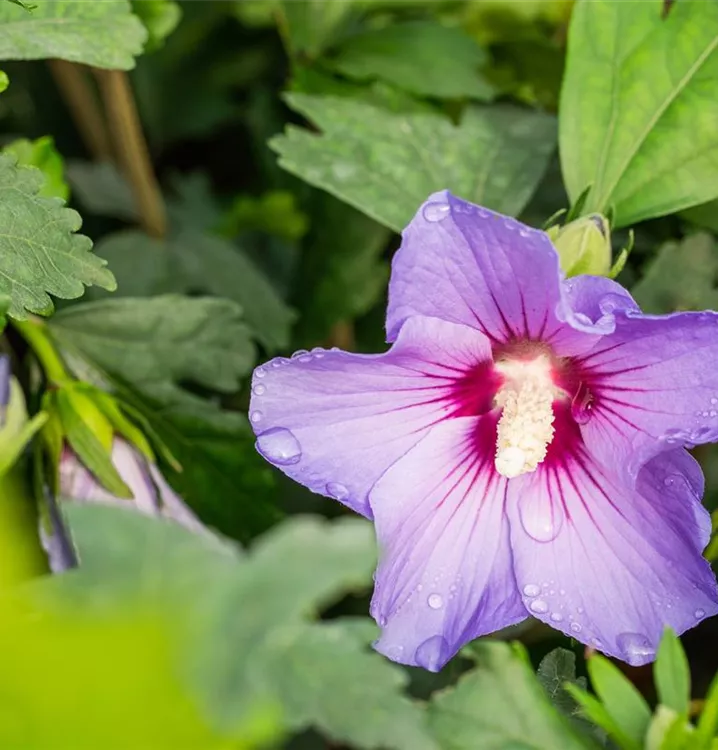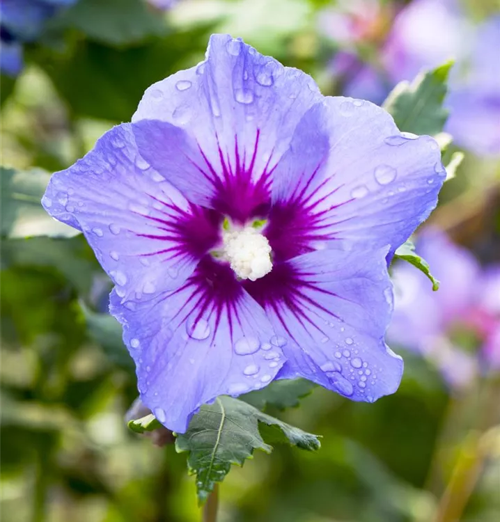 Blüte: Violettblau, dunkelrote Mitte, einfach, geringer Duft;