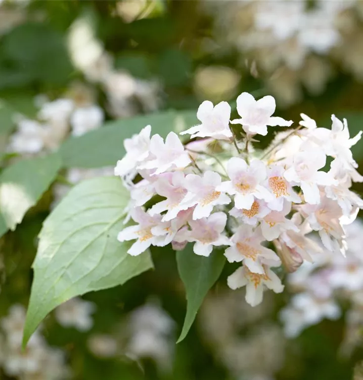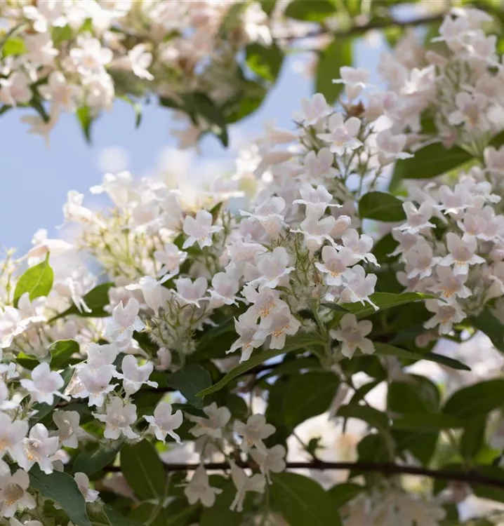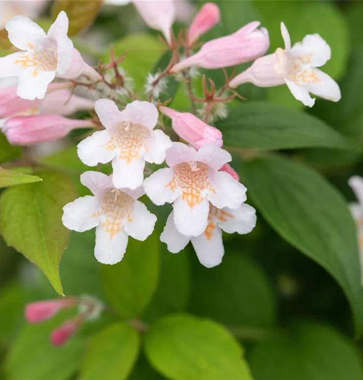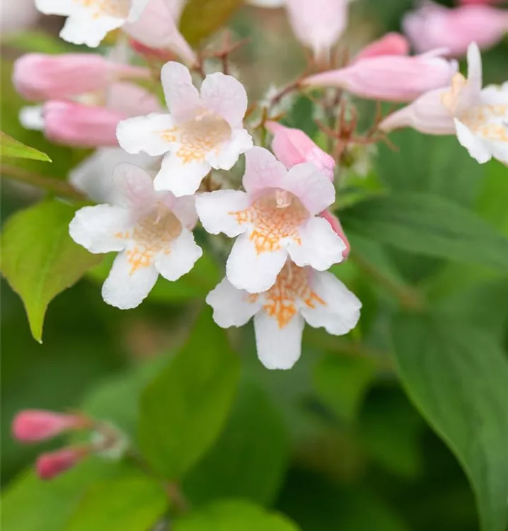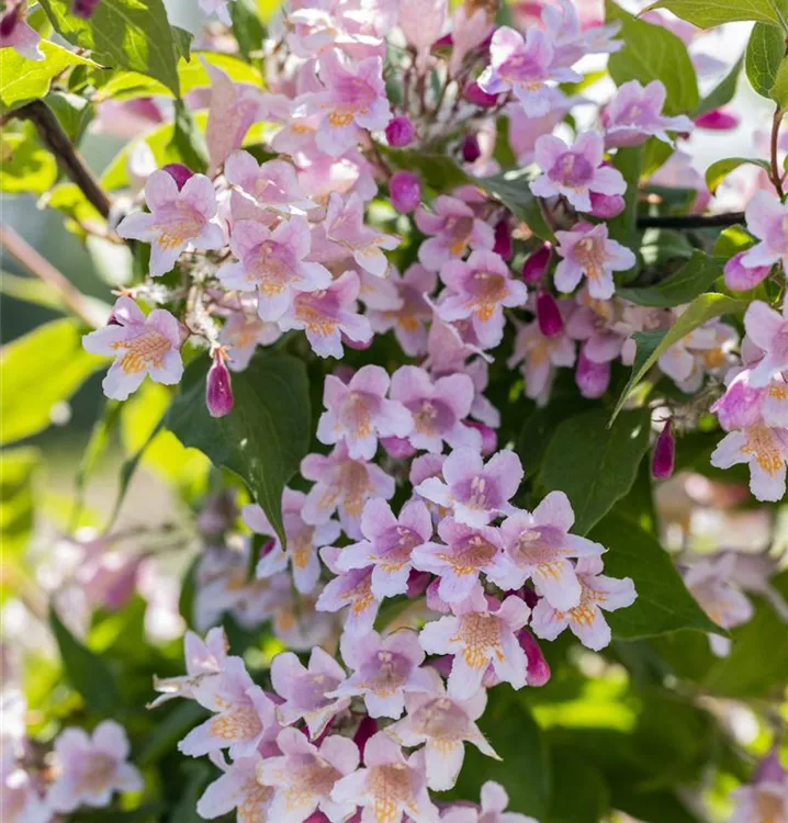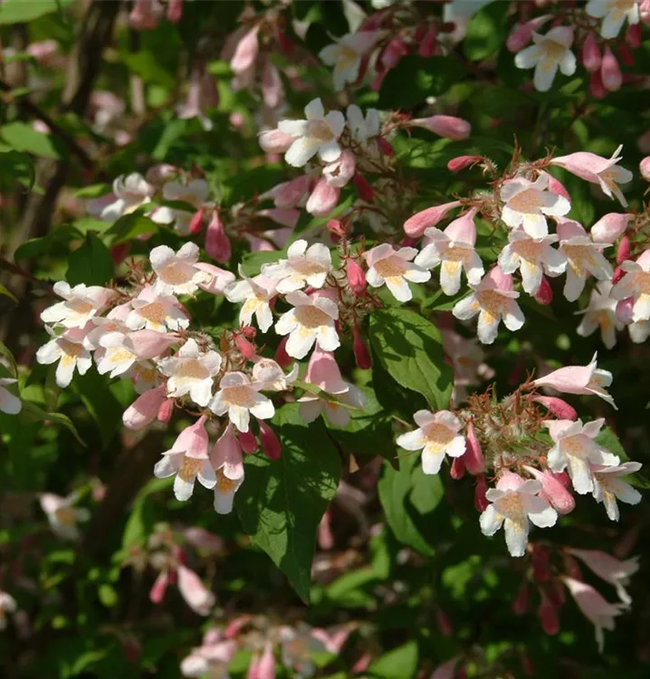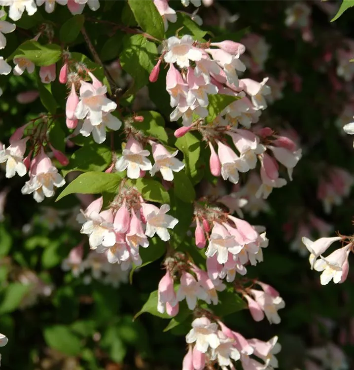 Blüte:Rosa bis rotweiß,gelber Schlund,doldenförmig; Mai - Juni. Wuchs: Breit aufrecht; 2 - 3,5 m hoch (20-50 cm j.)