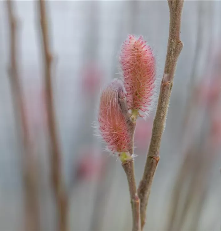 Blüte: Rosa Kätzchen, weißlich behaart; April - Mai.