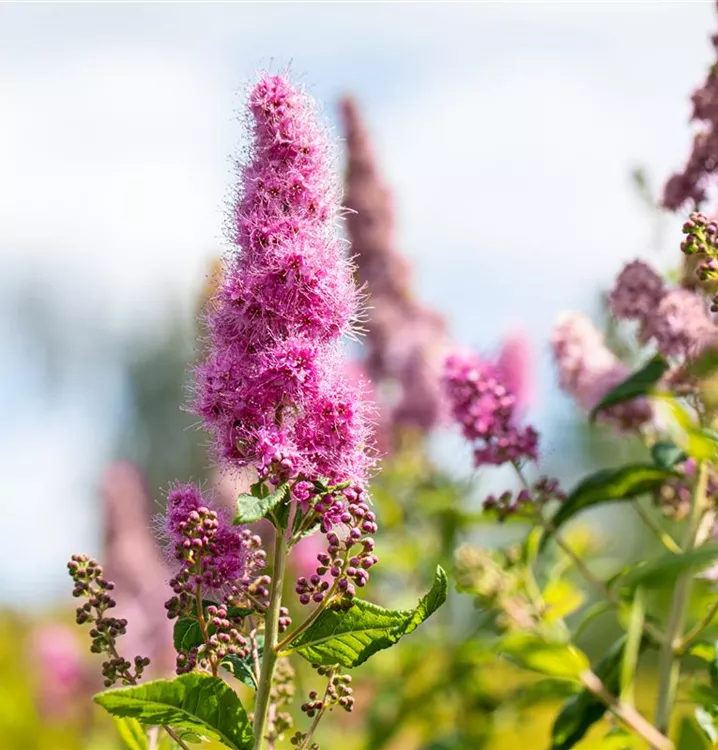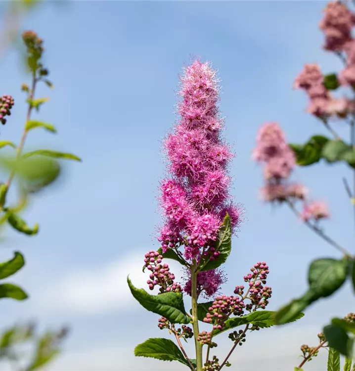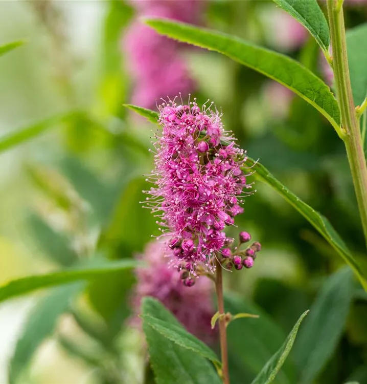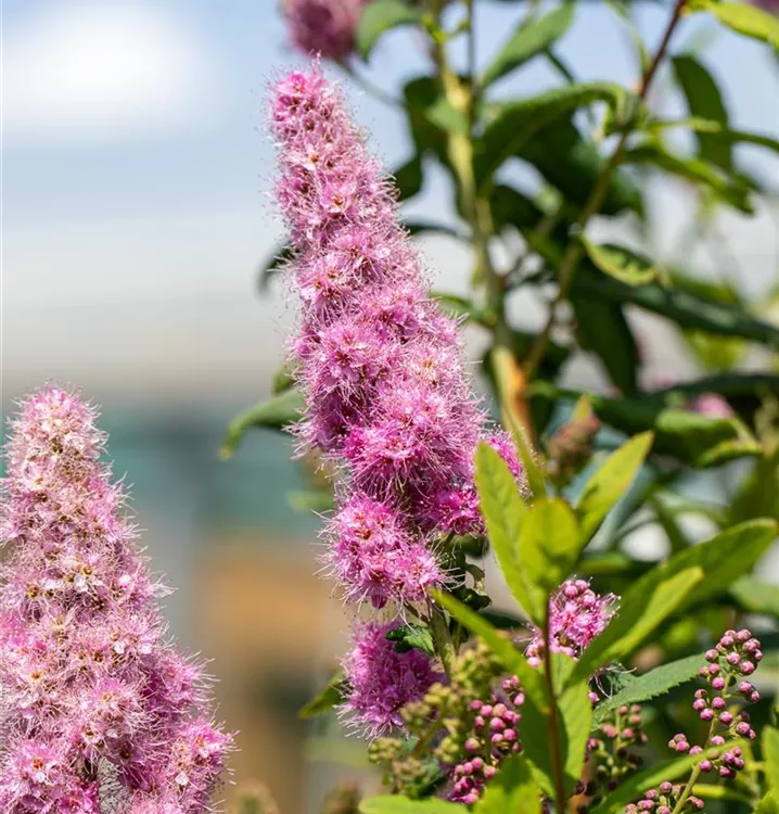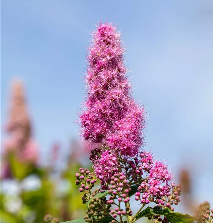 Blüte: Tief rosa, bis 20 cm lange Rispen; Juni - Juli.
