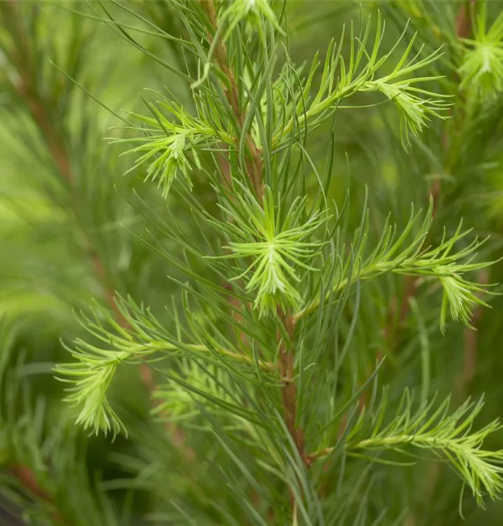 Nadeln: Hellgrün, zierlich, im Herbst goldgelb, laubab-