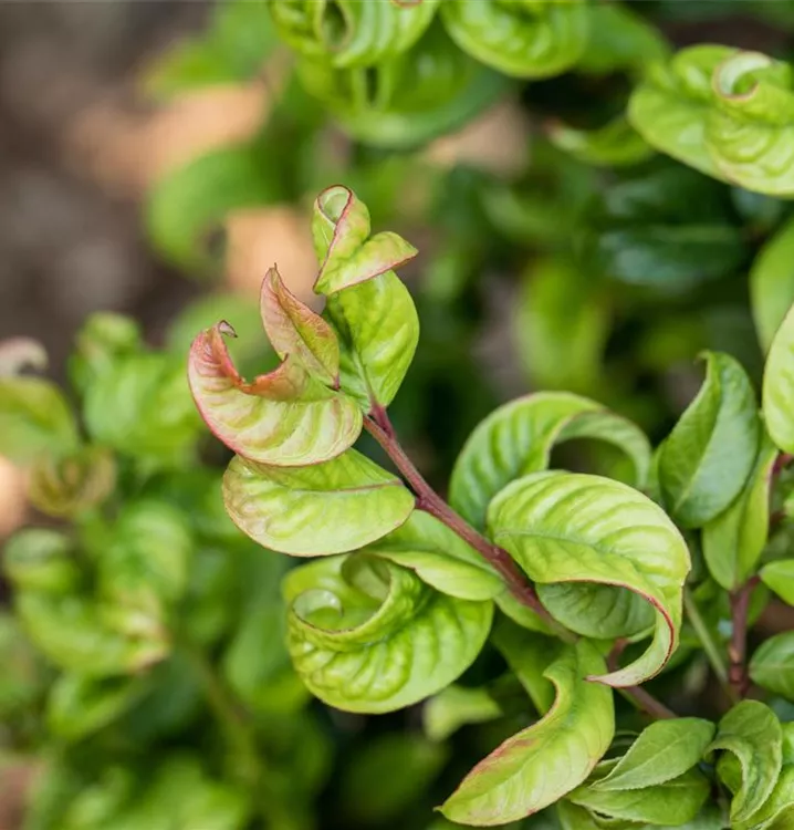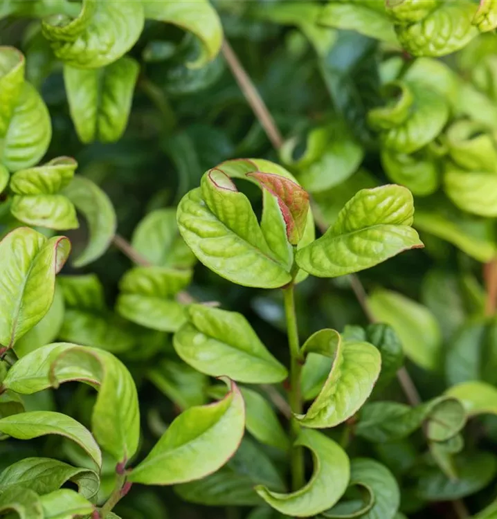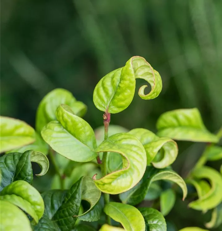 Blüte: Weiß; Mai bis Juni. Immergrün, gedrehtes Blatt.