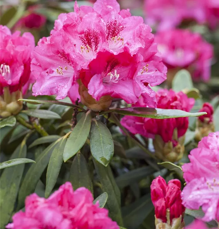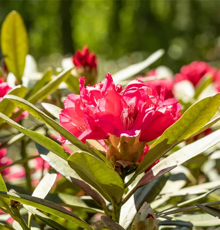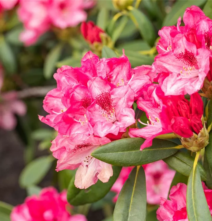 Blüte: Hellrot mit dunklem Auge; Ende Mai - Anfang Juni Wuchs: Aufrecht, kompakt; 0,8 - 1 m hoch + 0,9 + 1,3 breit