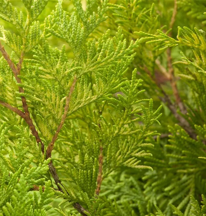 Nadel: Gelb, schuppenartig, dicht; immergrün. Wuchs: Kegelförmig; 3 - 4 m hoch + 1 - 2 m breit (20-30 cm j.)