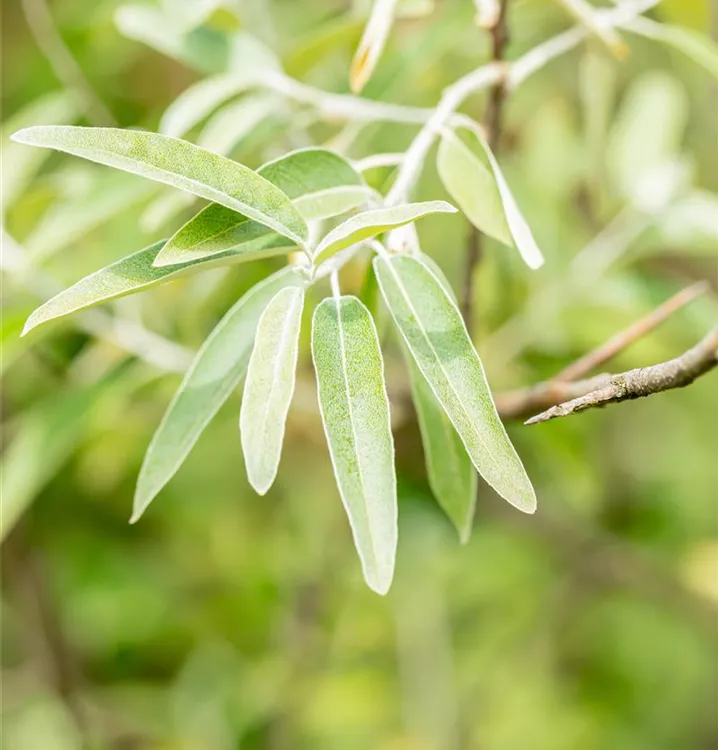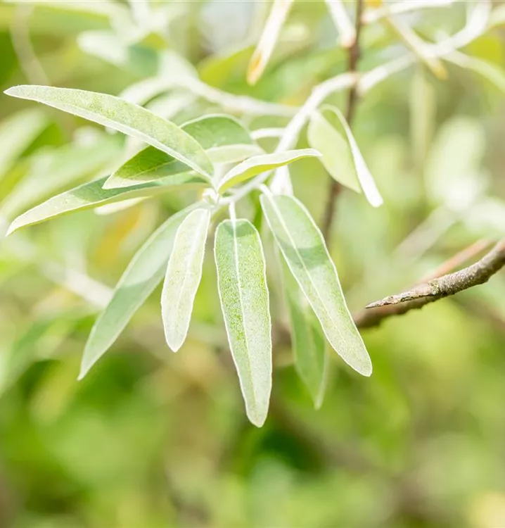 Großstrauch oder Baum mit weißfilzigen Blättern und bedornten Zweigen, anspruchslos.