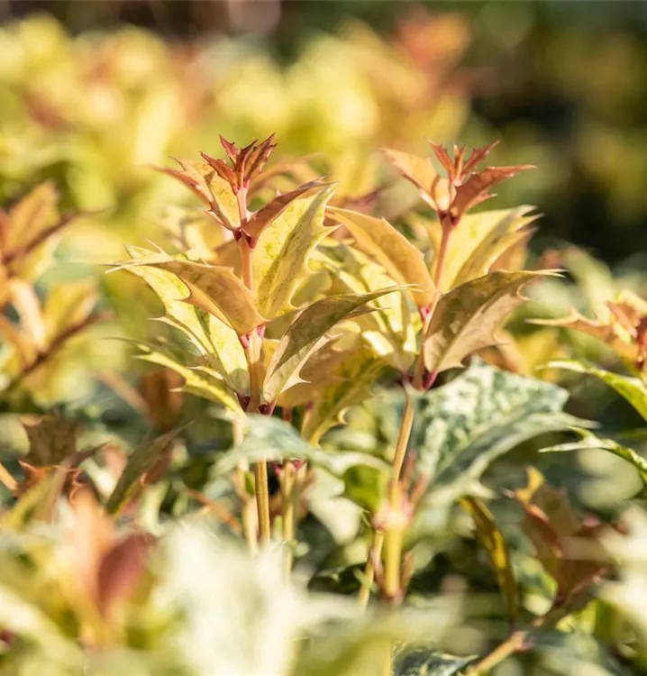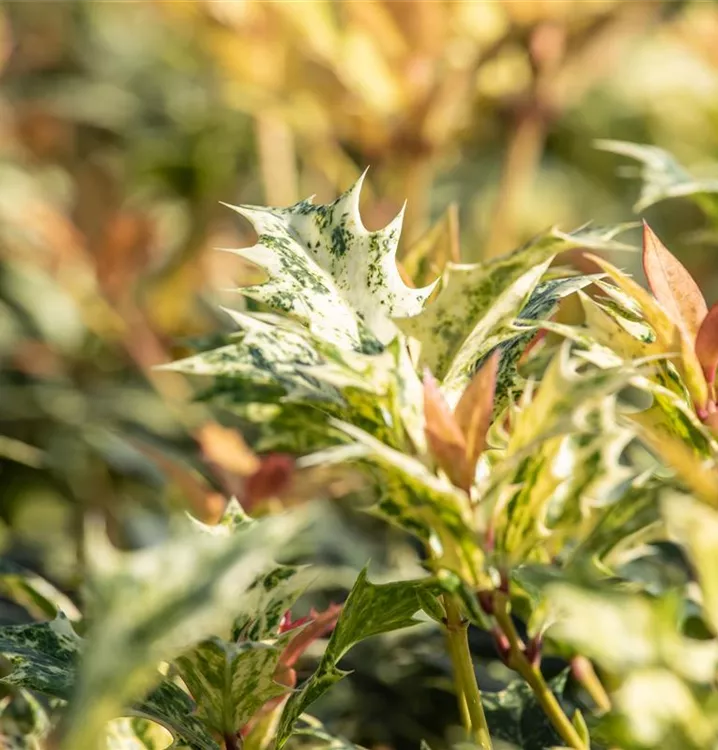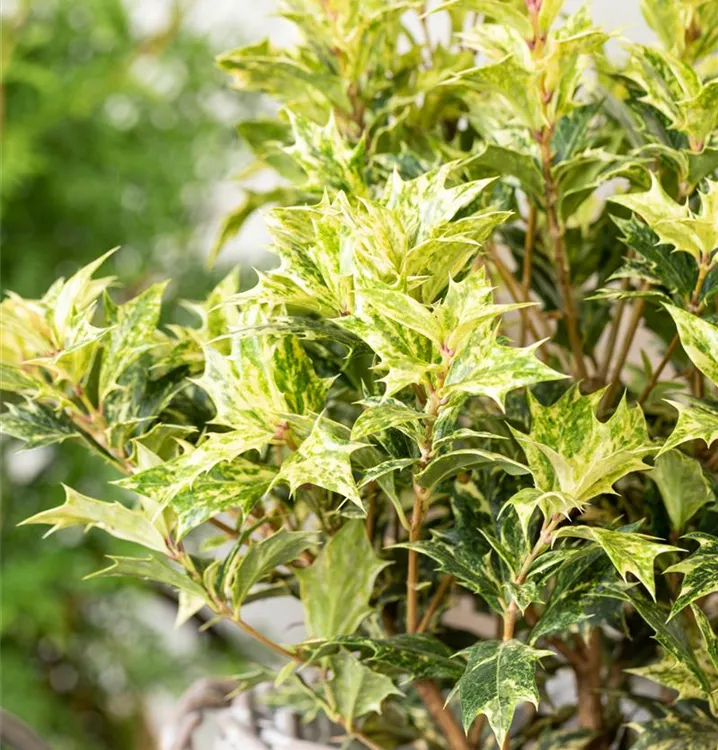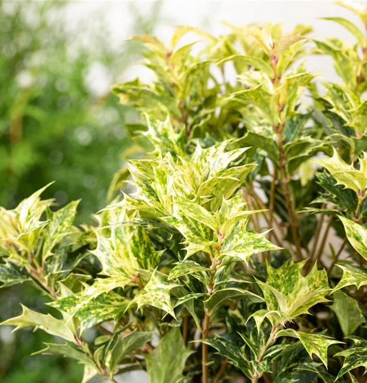 Blüte: Weiß, reichlich duftend. Blatt: Ilex-ähnlich, immergrün. Wuchs: 80 -140 cm (5 - 10 cm p.a.)
