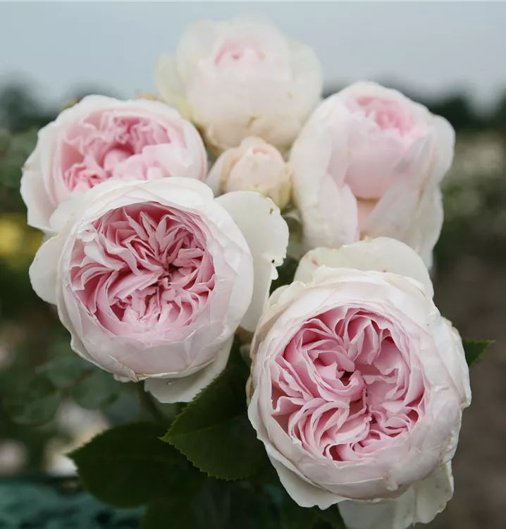 Blüte: Creme-zartrosa, stark duftend, berauschend; öfter blühend. Wuchs: Buschig; 70 cm hoch + 40 cm breit.