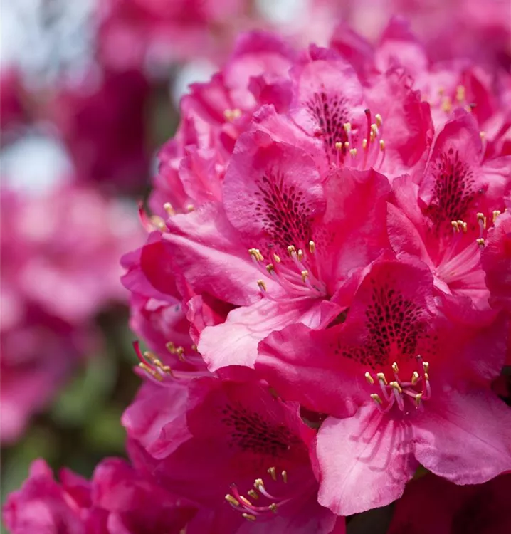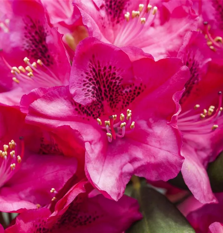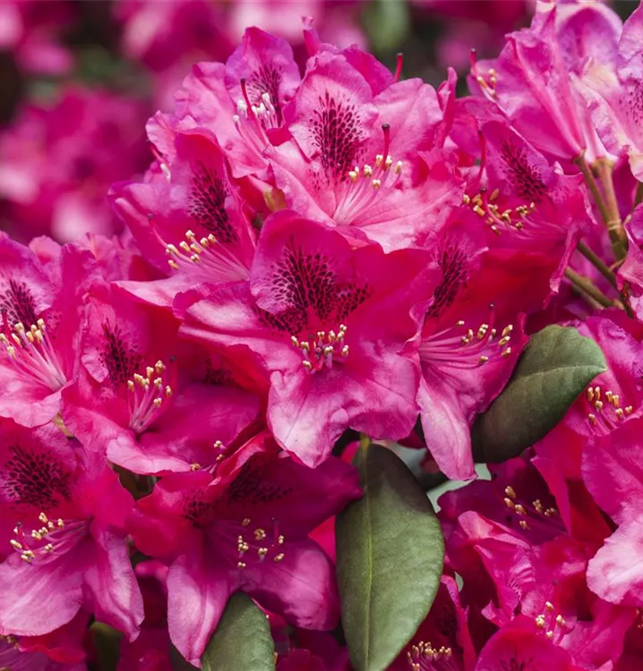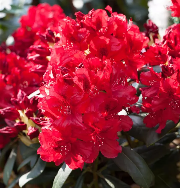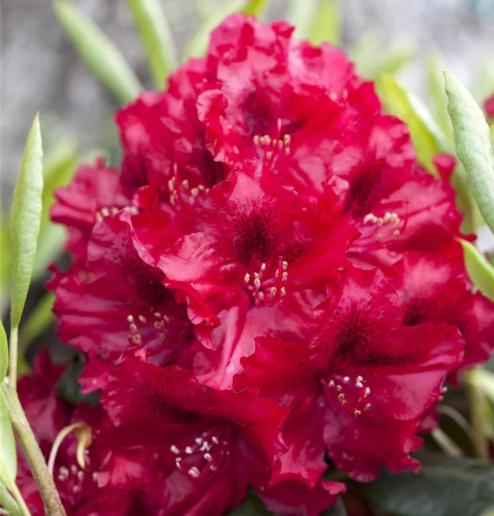 Blüte: Tief dunkelblutrot; Mitte Mai - Mitte Juni. Immergrün. Wuchs: Breitkompakt; 1 - 1,4 m hoch + 1,2 - 1,6 m breit.