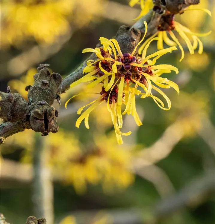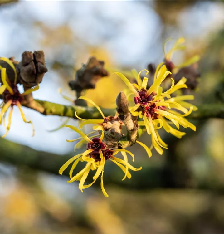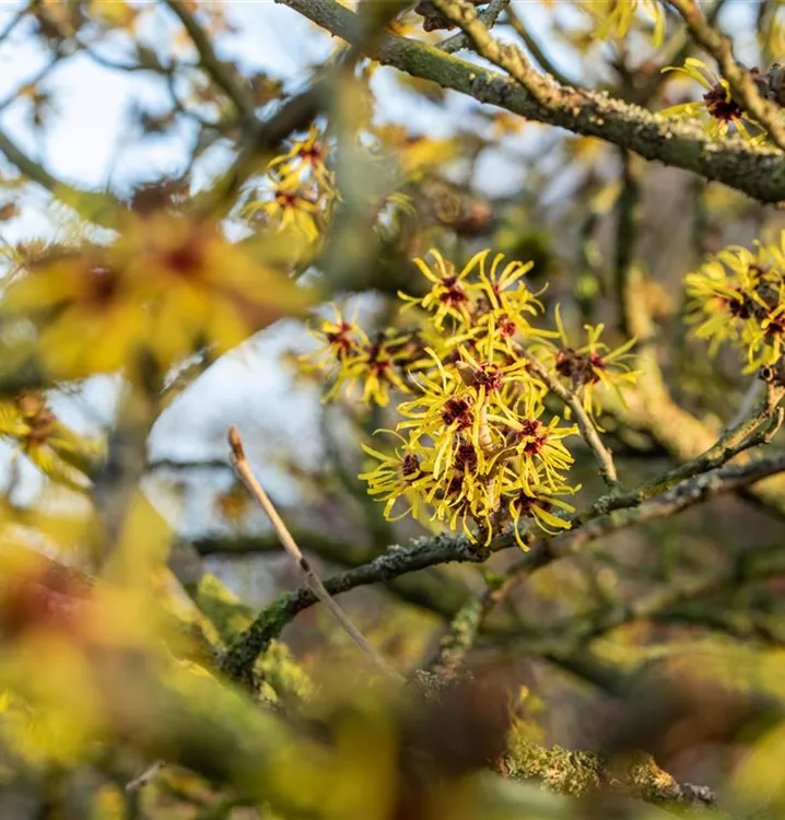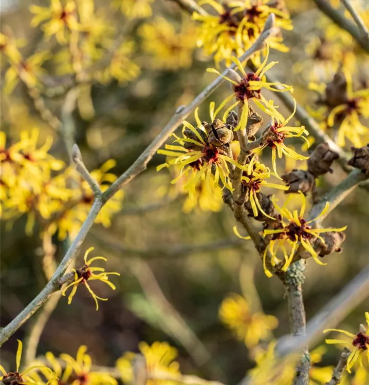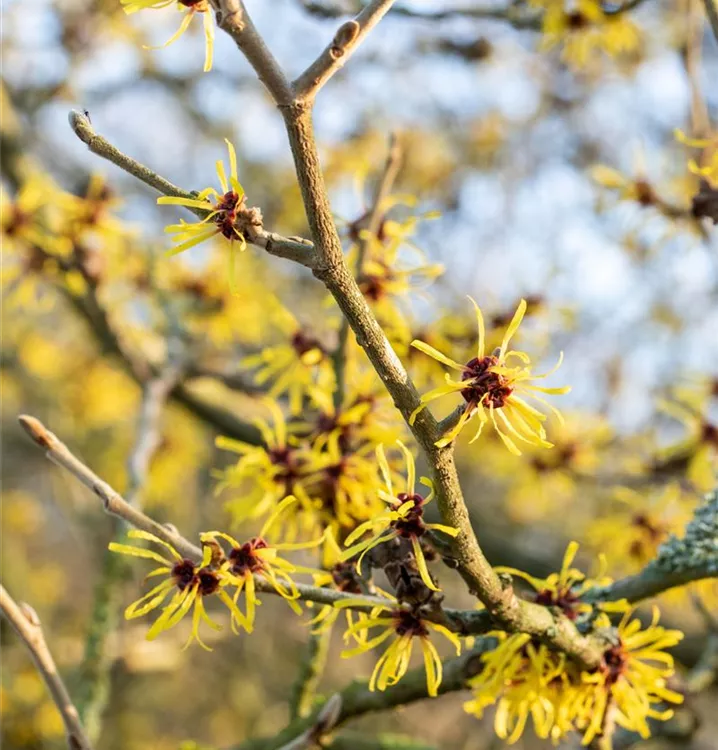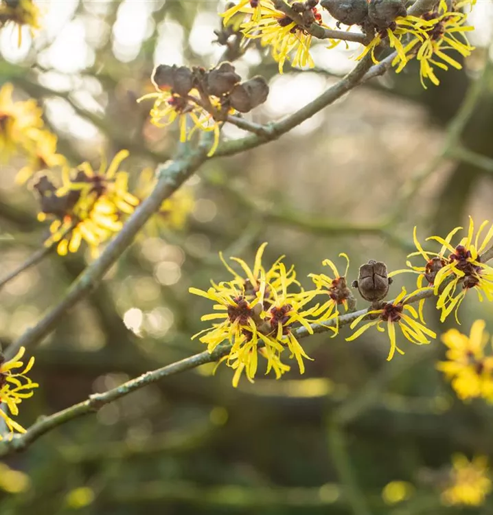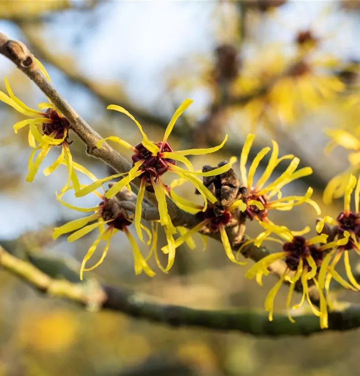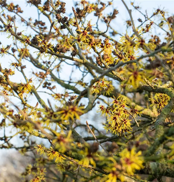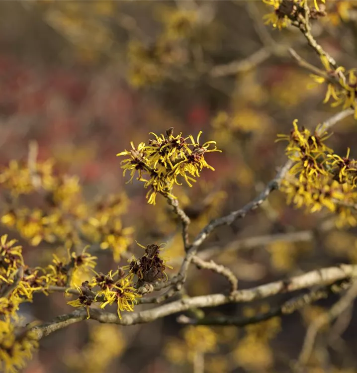 Blüten: Hellgelb, leichter Duft; Jan. - März. Herbstfärbung! Wuchs: Locker aufrecht; 2,5 - 3 m hoch (15-40 cm p.a.)