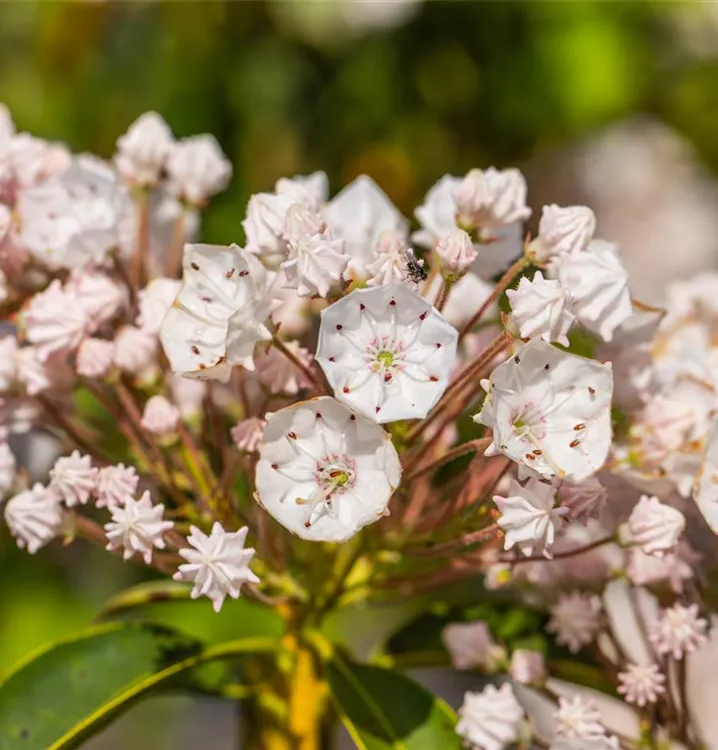 Blüte: Hellrosa-weiß, doldenförmig; Juni.