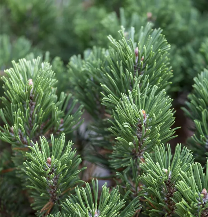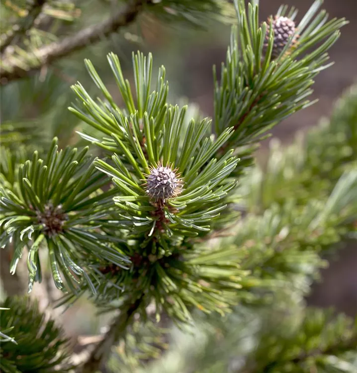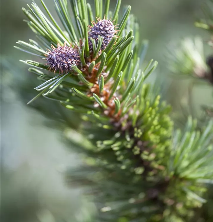 Nadeln: Blaugrün; immergrün. Später Zapfen.