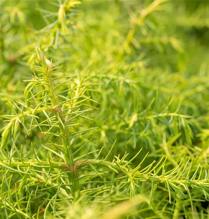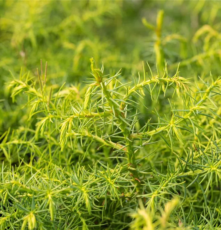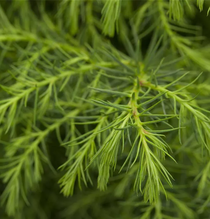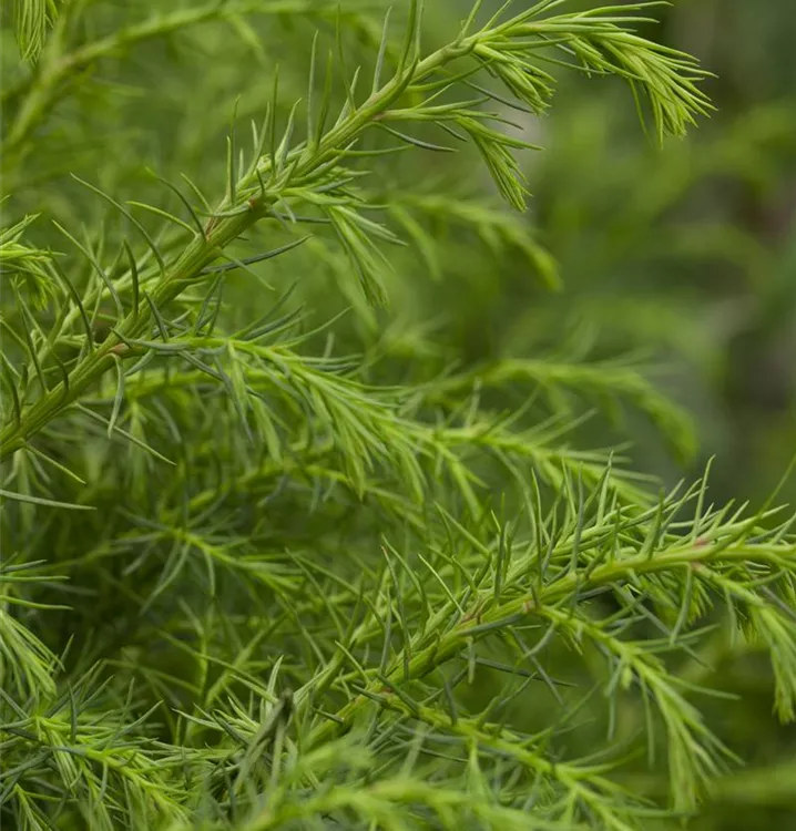 Blatt: Nadelartig, grün; immergrün. Breit kegeliger bis etagenförmiger Wuchs: 4 - 6 m hoch + 3 - 4 m breit.