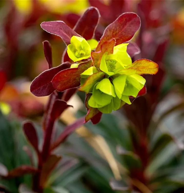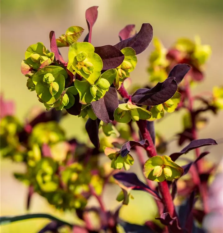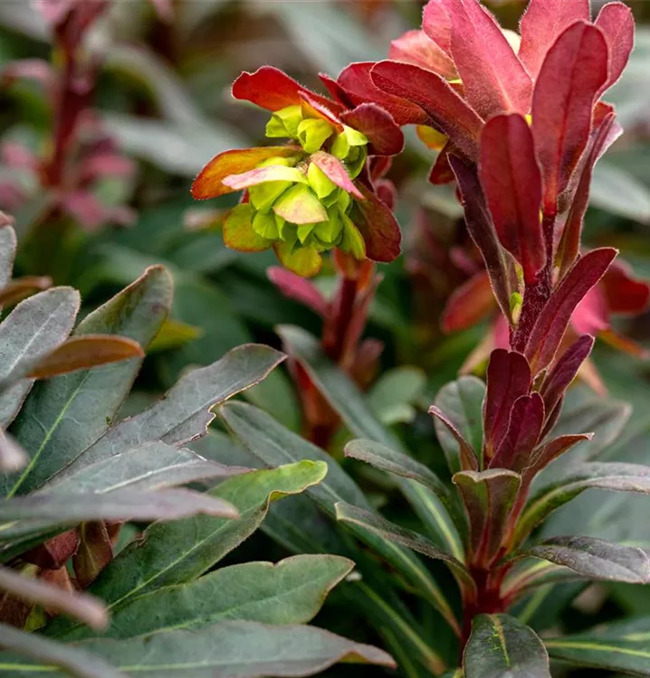 Blüte: Grünlich-gelb; Apüril - Juni. Rotes Laub.