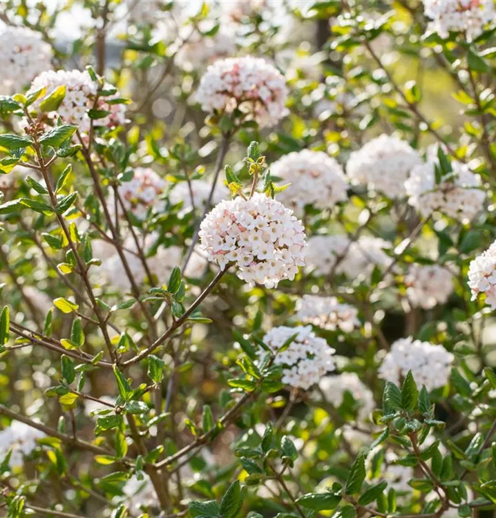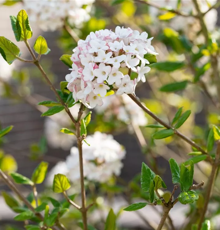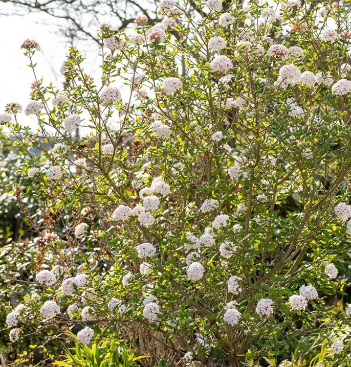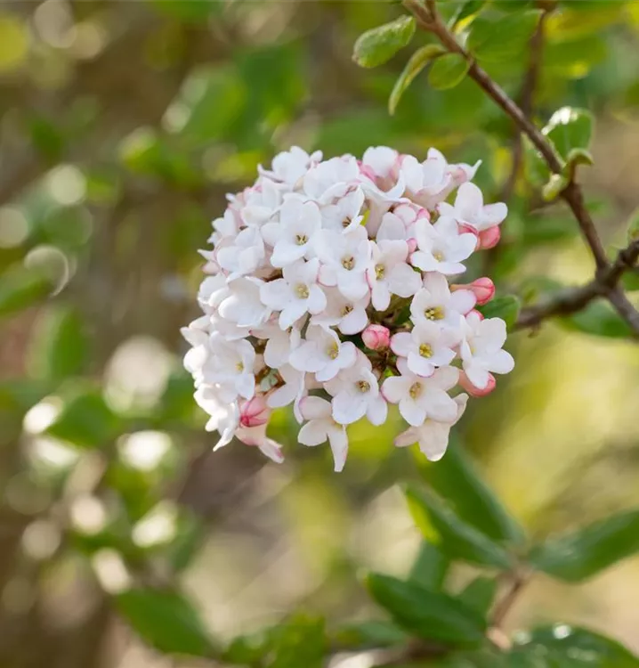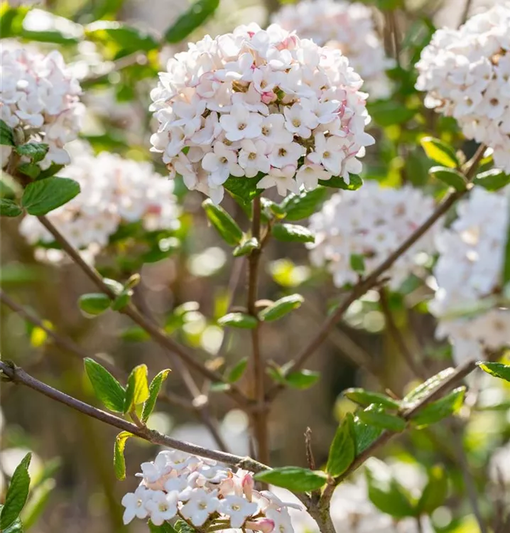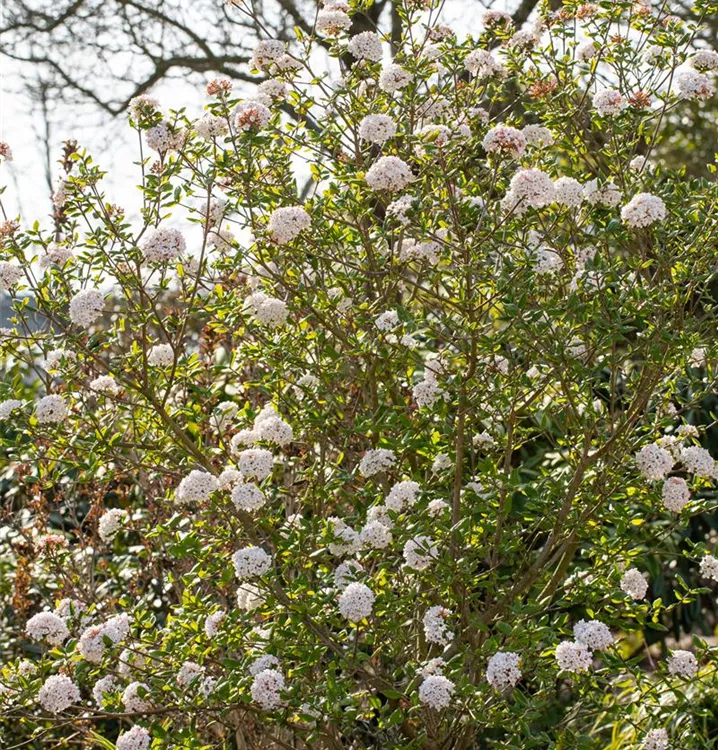 Rosa aufblühend, später weiß; April - Mai. Angenehmer schwerer Duft. Wuchs: 1,5 - 2,0 m hoch + breit