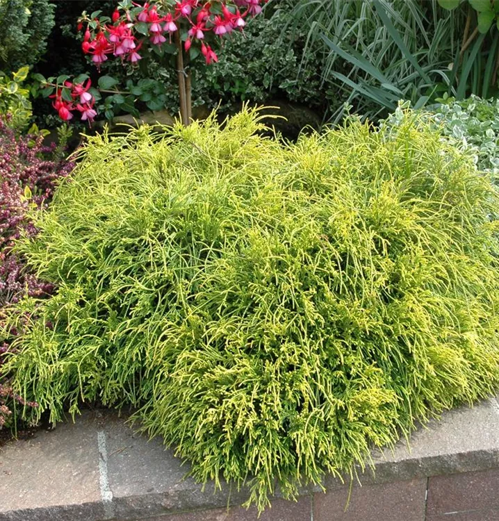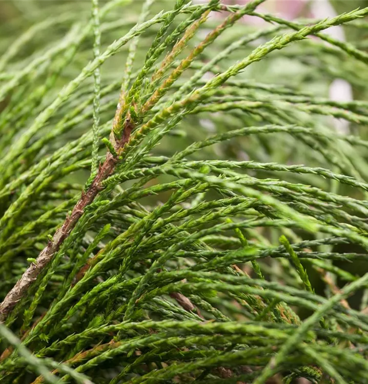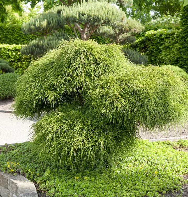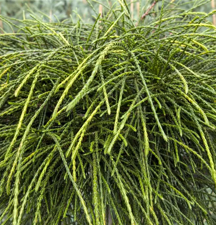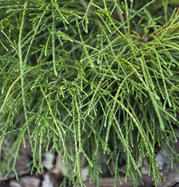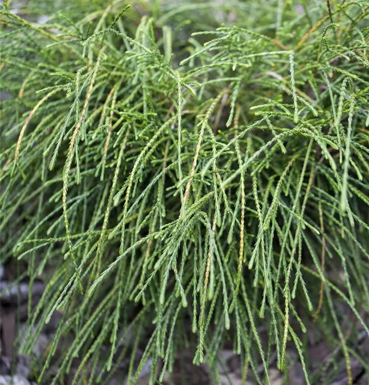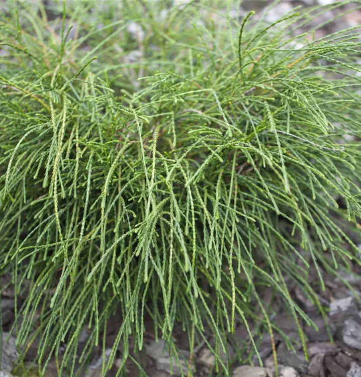Nadel: Frischgrün, glänzend, bis zu 30 cm lange Fäden; immergrün. Wuchs: 30-40 cm hoch + 40-50 br. (3-5 cm j.)