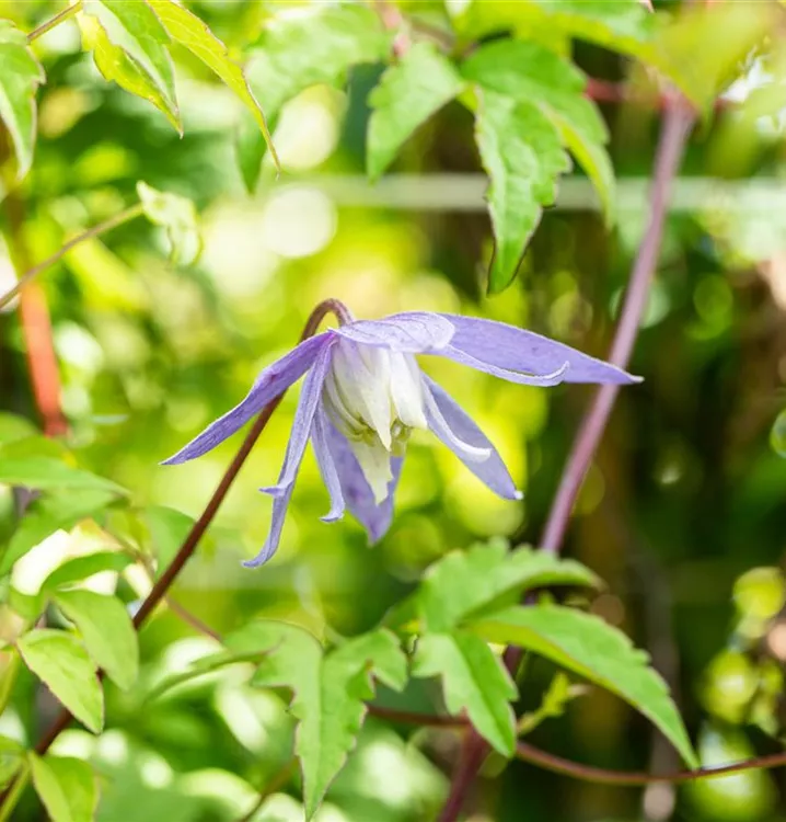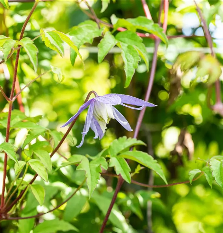 Blüte: Hellblau-violett, Mai - Juni, sonnig - halbschattig, bis 3 m, Kletterhilfe, Einzelstellung, Terrasse.