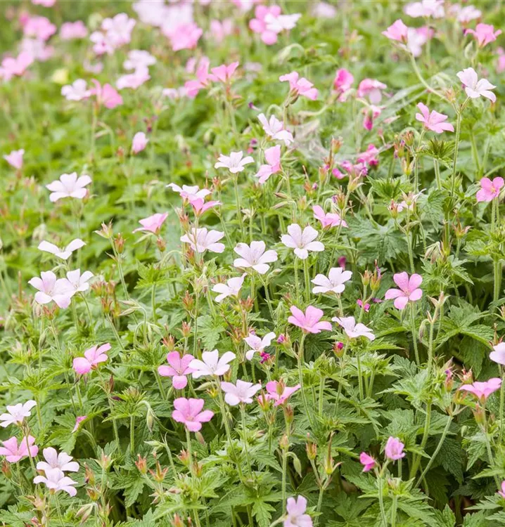 Blüte: Violettrosa, dunkel geadert, leichter Duft; Juni -Okt..