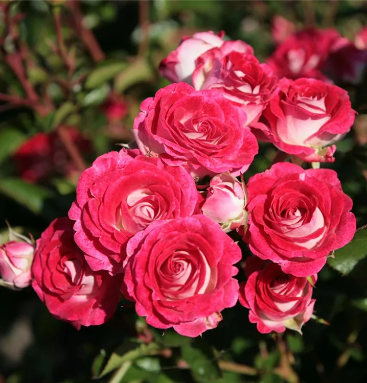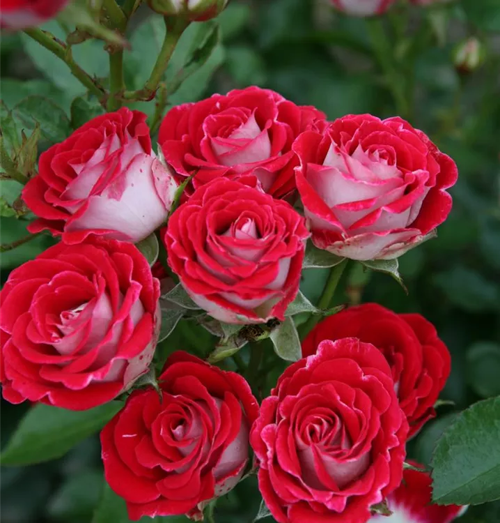 Blüte: Rot mit cremeweiß, gefüllt, kein Duft; öfter blühend.