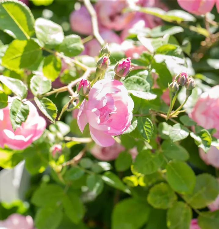 Blüte: Hellrosa, klein, halbgefüllt, öfter blühend.