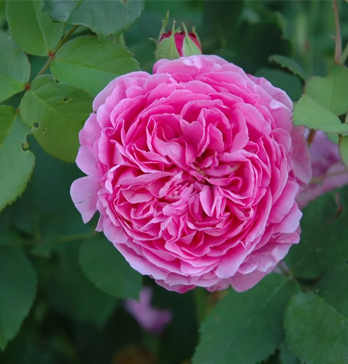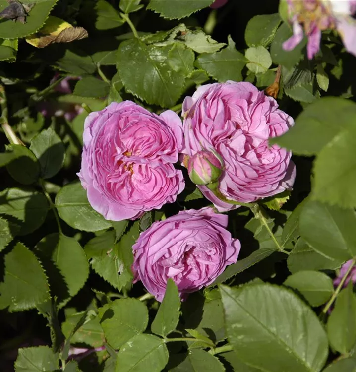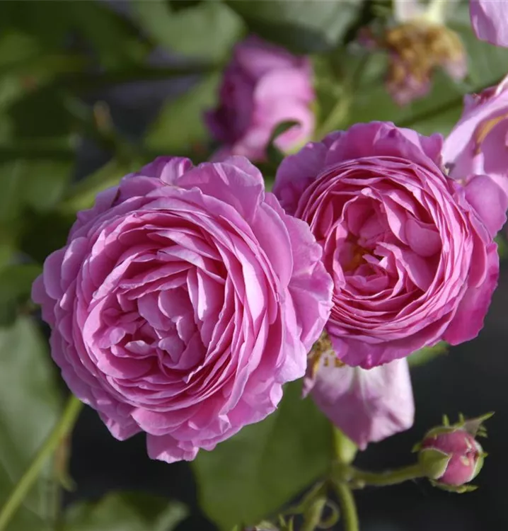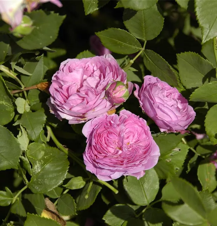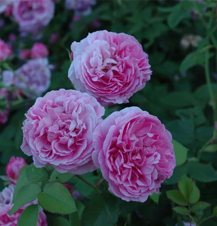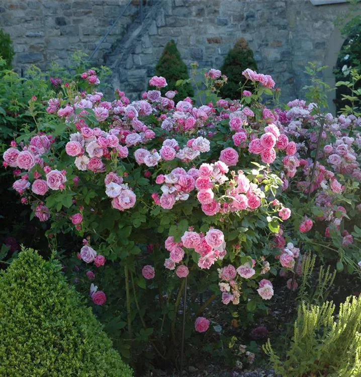Blüte: Reinrosa,dicht gefüllt, intensiver Duft; öfterblühend. Wuchs: Bogig überhängend; 130 - 170 cm hoch.