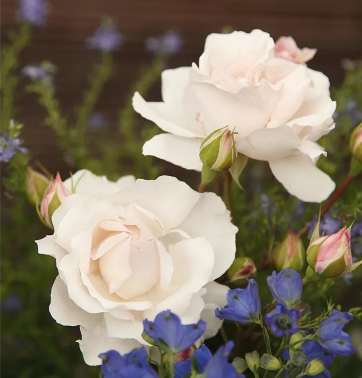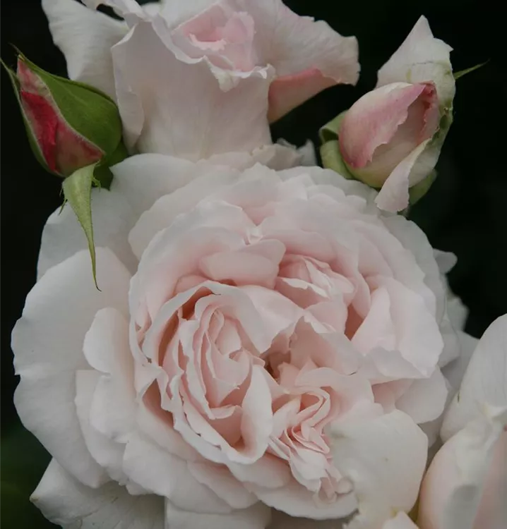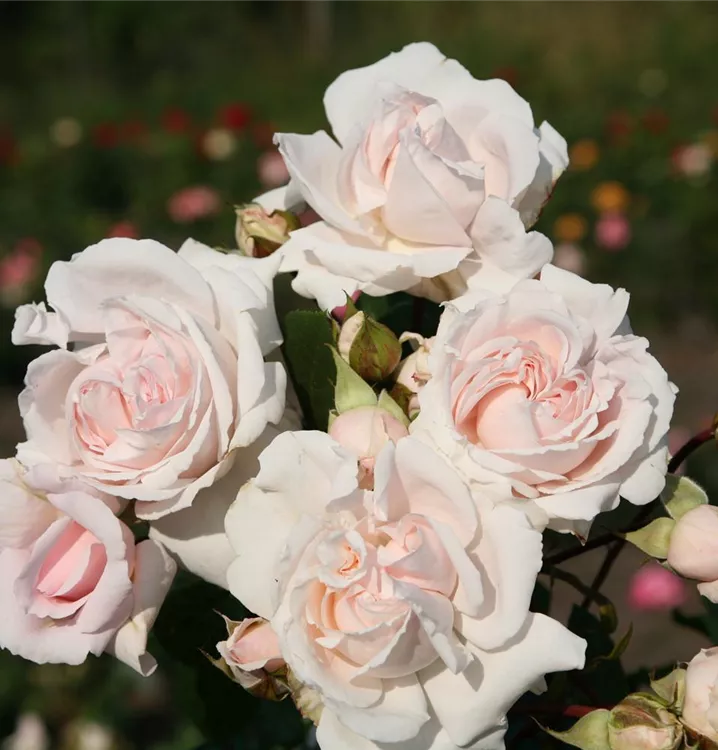 Blüte: Zart cremerosa, nostalgische Form, öfter blühend, stark duftend: Wuchs: ca. 80 cm hoch; aufrecht, buschig.