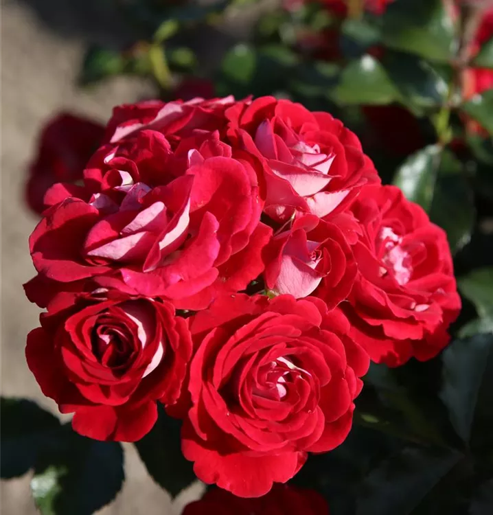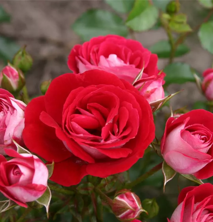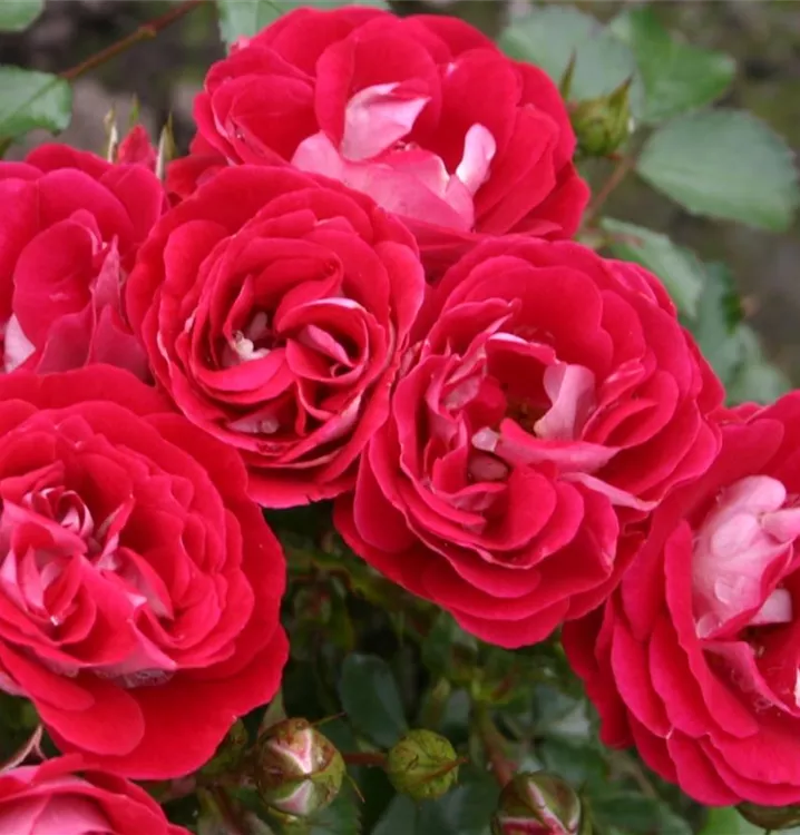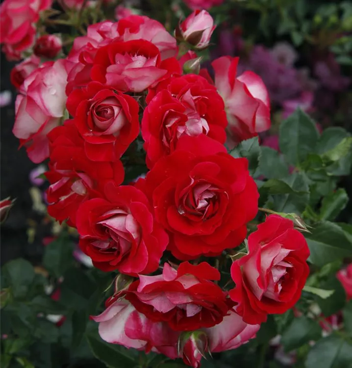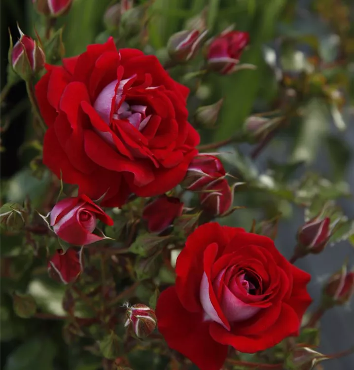 Blüte: Innenseite rot, außen creme-weiß, gefüllt; öfter