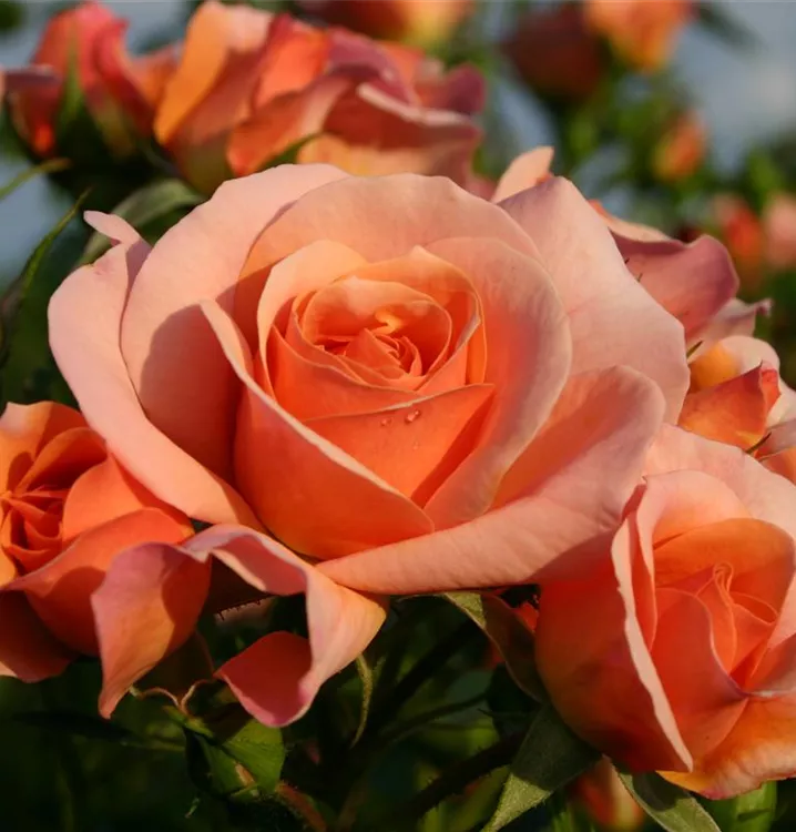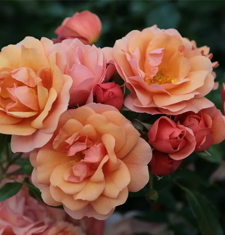Blüte: Aprikosengelb, halbgefüllt, toller fruchtiger Duft, öfter blühend. Wuchs: Kräftig, aufrecht; 60 - 70 cm hoch.