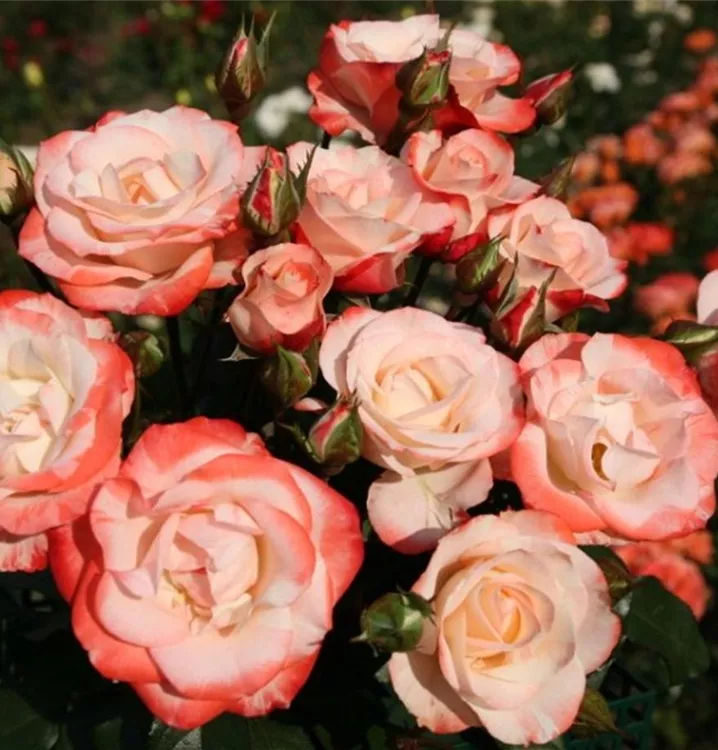 Blüte: Weiß mit rotem Rand, duftend; öfterblühend.
