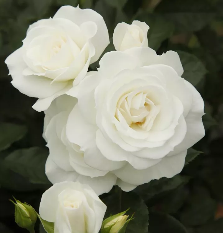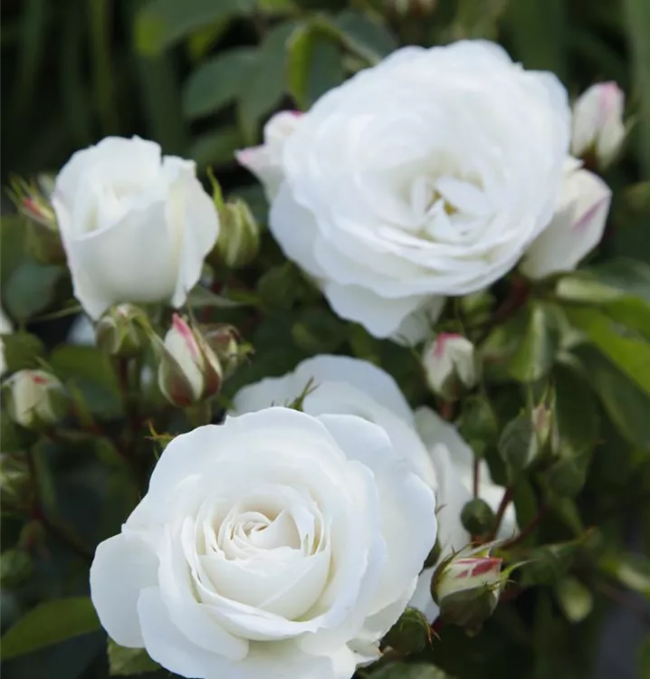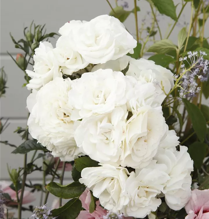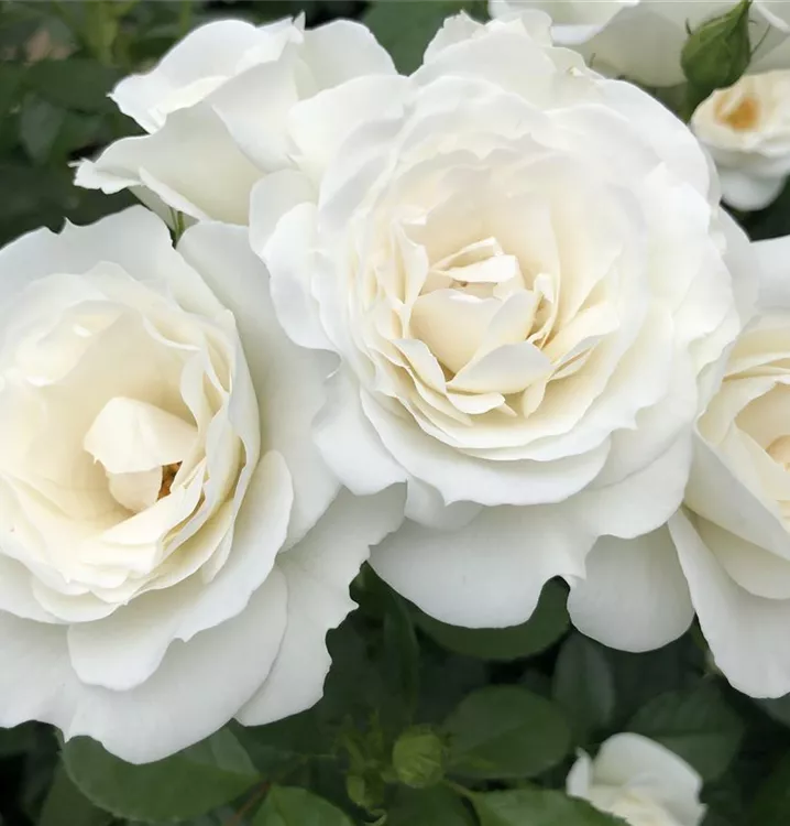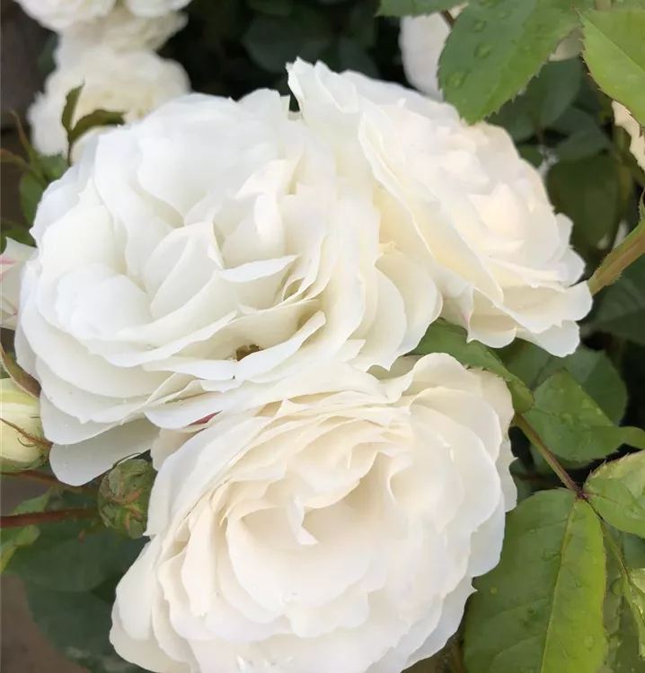 Blüte: Schneeweiß, halbgefüllt, duftend; Juni - Sept.