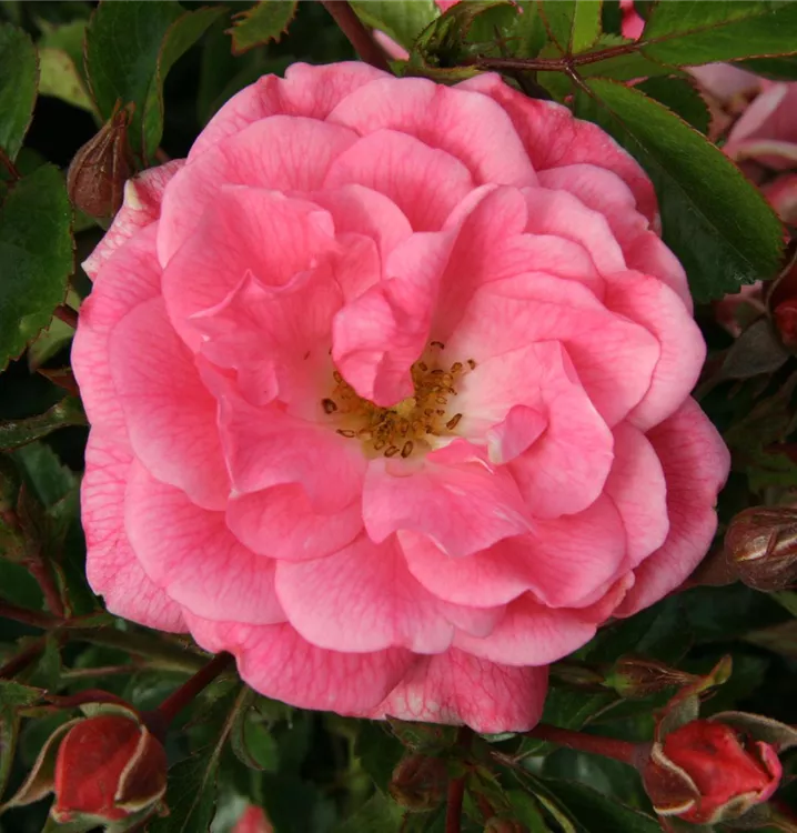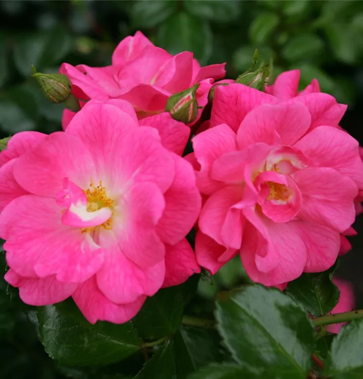 Blüte: Kräftig rosa, halbgefüllt, kein Duft; öfter blühend. Wuchs: Breitbuschig; 60 - 80 cm hoch.