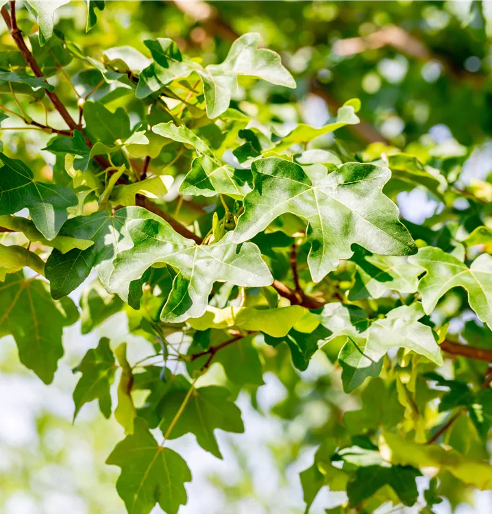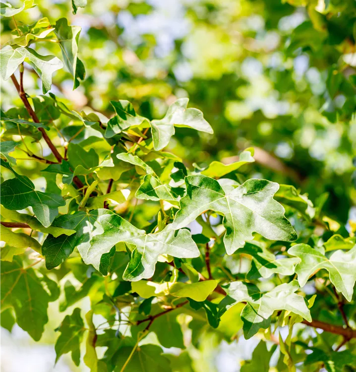 Gleichmäßiger Wuchs, frischgrüne, gewellte Blätter, Herbstfärbung, mehltaufrei. Bis zu 11 m hoch + 5 m breit.