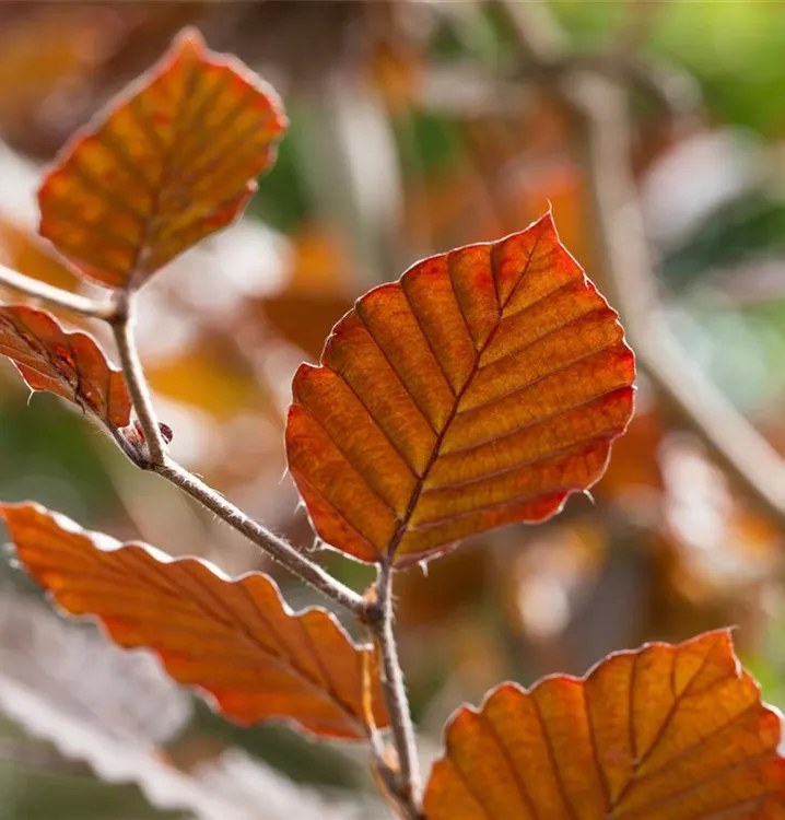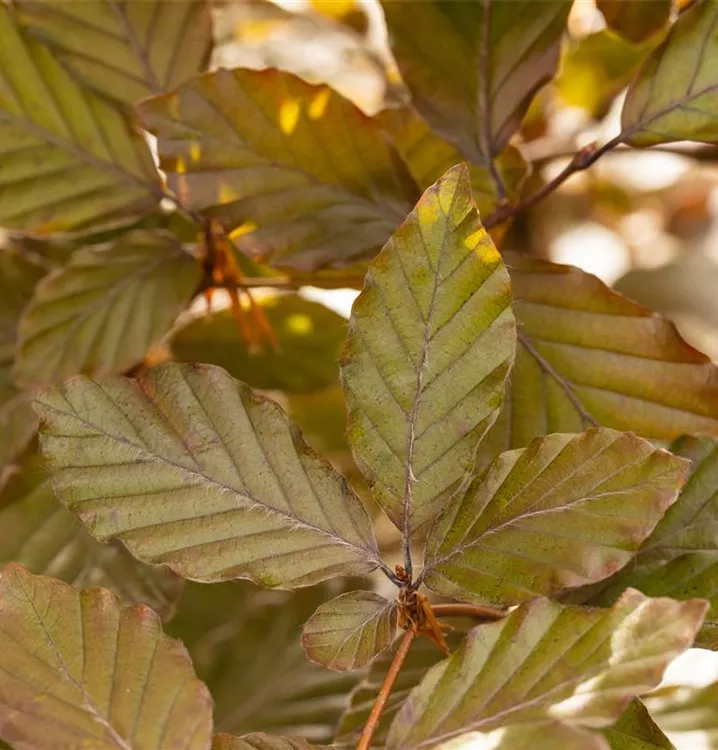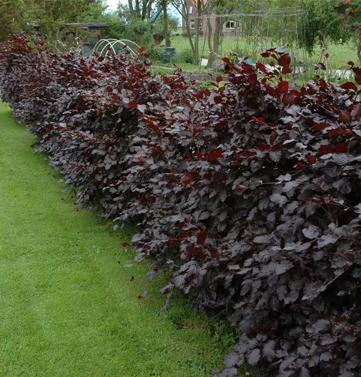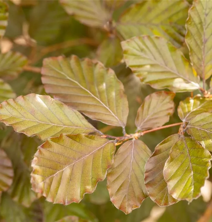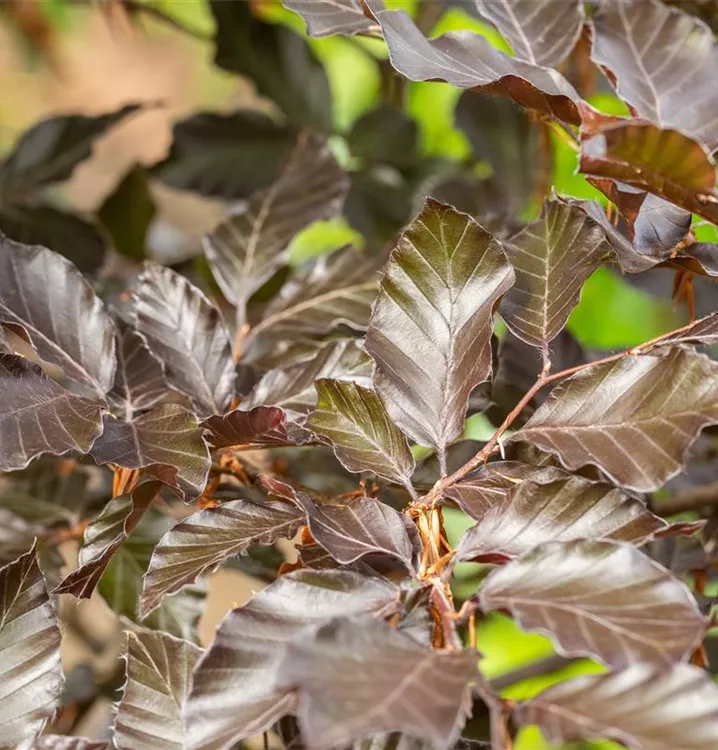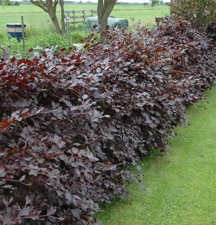 Im Austrieb tiefrot, im Sommer eher rotgrün, ideal als Hecke. Sehr winterhart. Wuchs: 30 - 50 cm p.a.