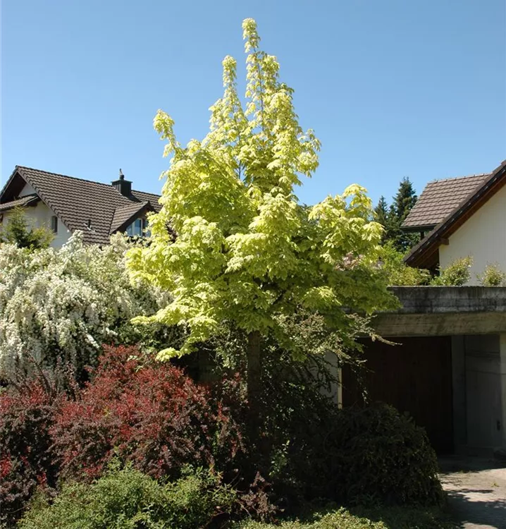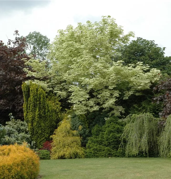 grün mit weißem Rand. Bis zu 15 m hoch + 9 m breit.