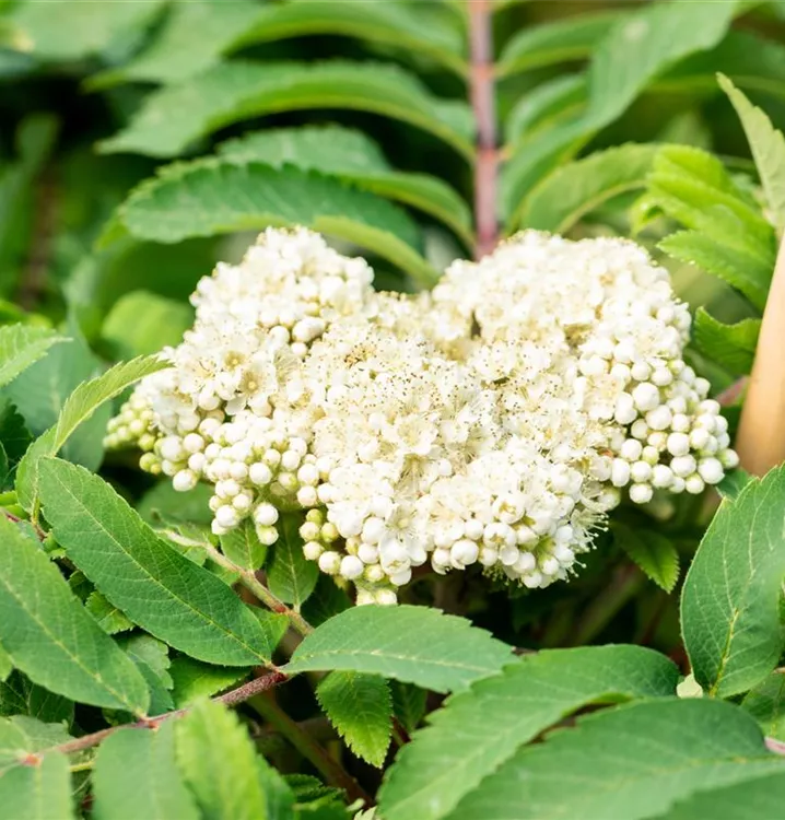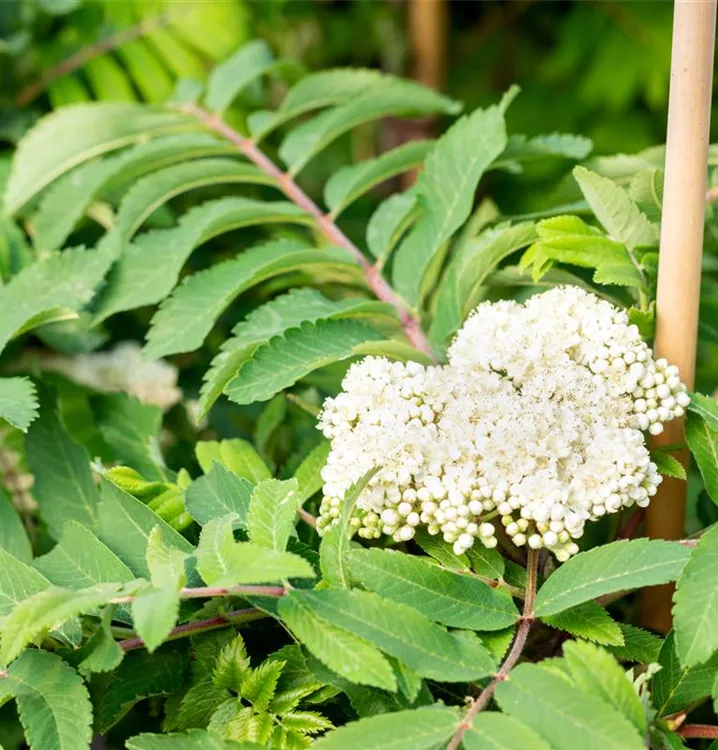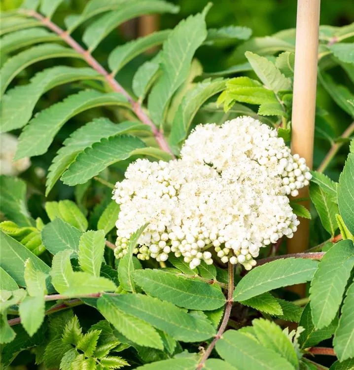 Blüte: Weiß; Mai - Juni. Zierfrucht: Krebsrot; September.