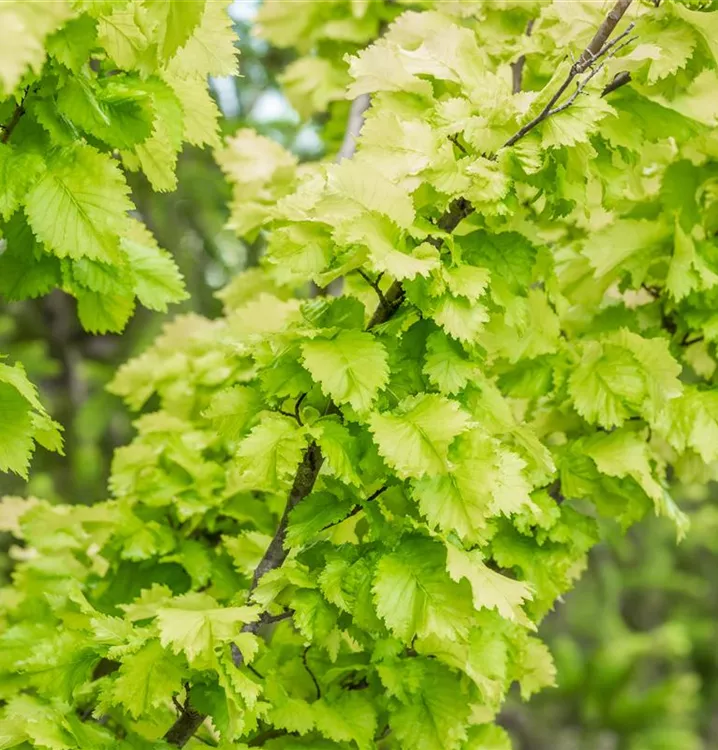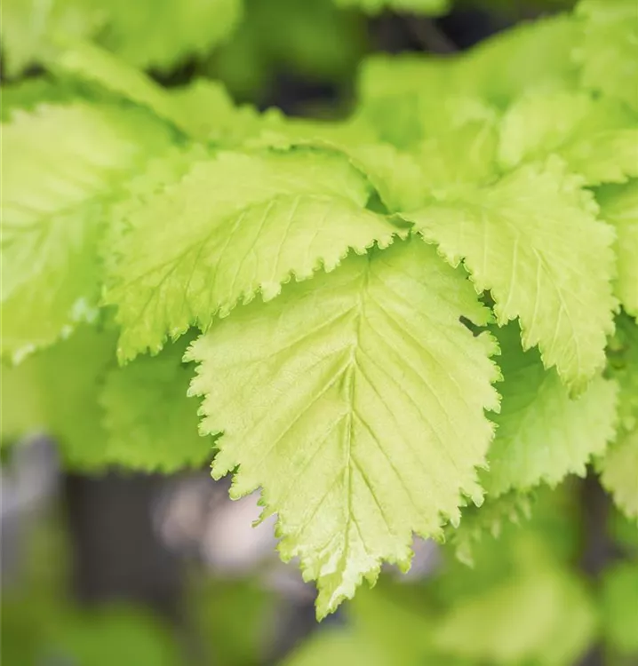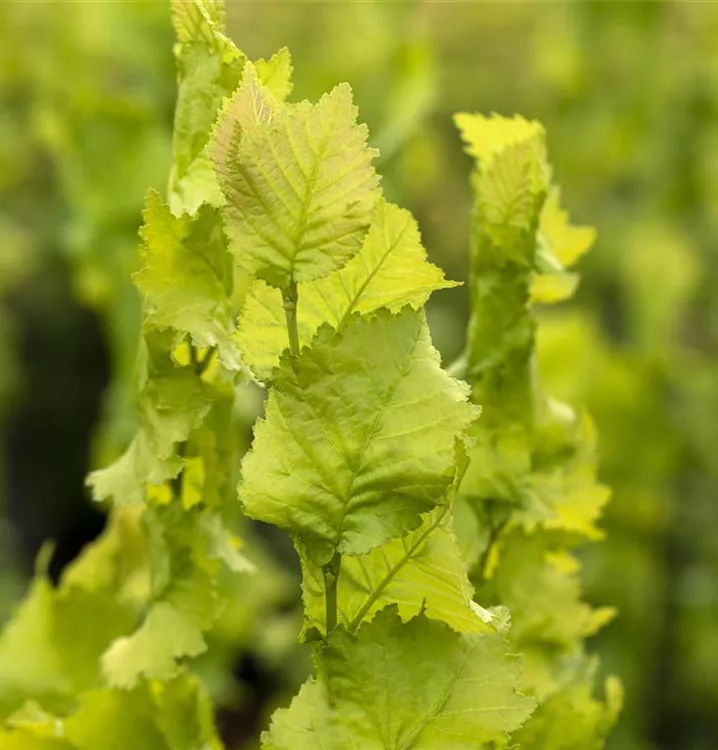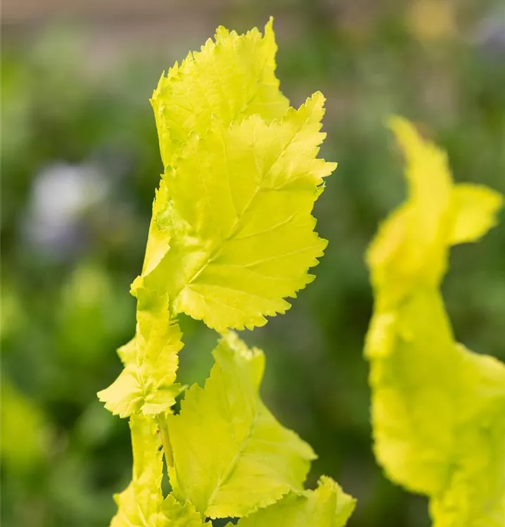 Blatt: Goldgelb, welliger Rand. Wuchs: Pyramidal, straff