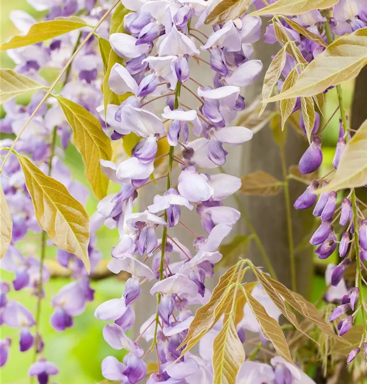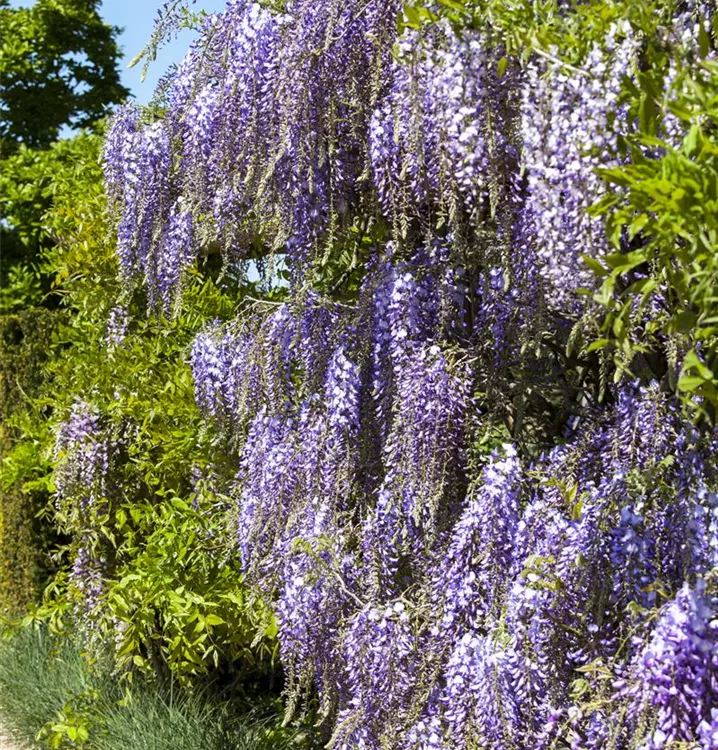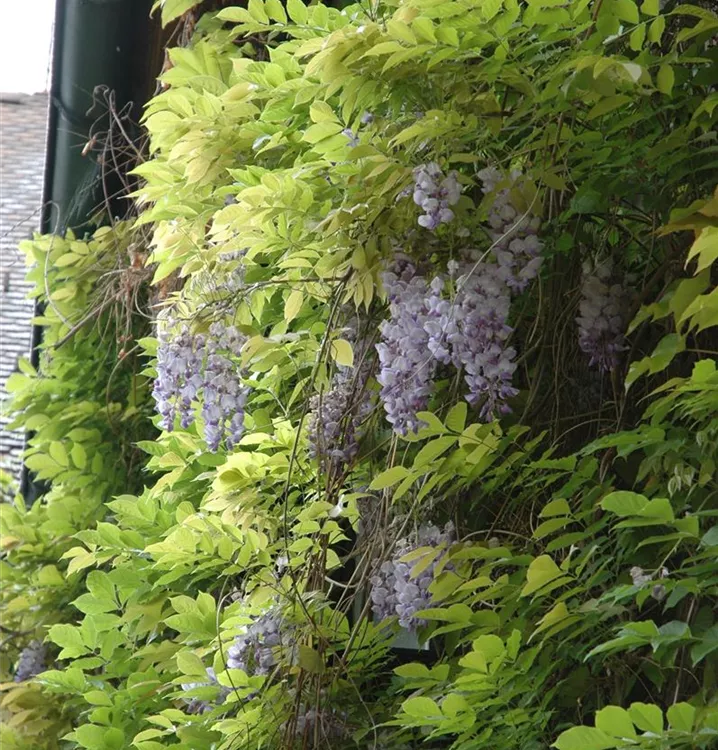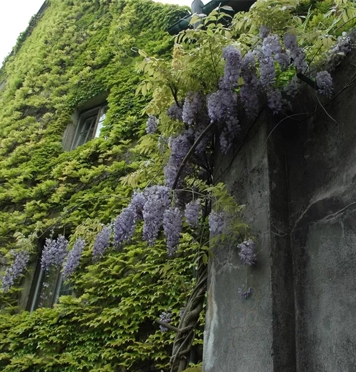 Schlingpflanze, Blüte violett, Mai - Juni, bis 8 m, sonnig - absonnig, Frucht giftig, Solitär, Hauswand, geschützt,