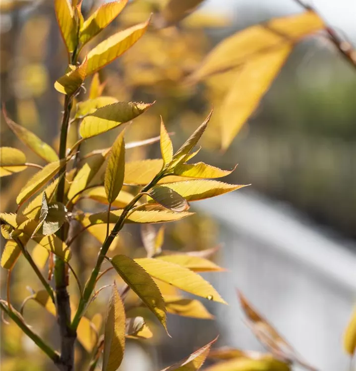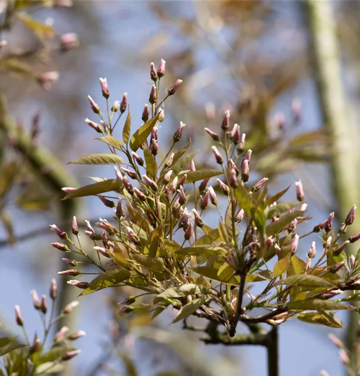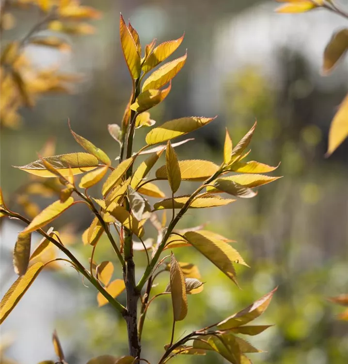 Strauch, mehrstämmig, Blüte weiß-rosa, bis 6 m, sonnig, Herbst rotorange, Früchte eßbar,