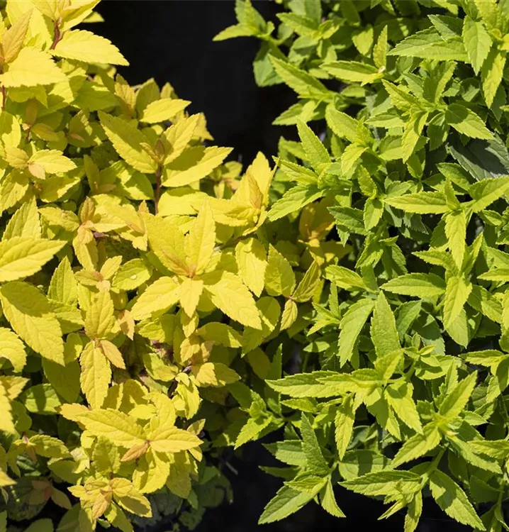 Strauch, Laub gelbgrün, Blüte karmin, Juli - September, bis 1 m, sonnig - absonnig, Bodendecker, Blütenhecke, Kübel,