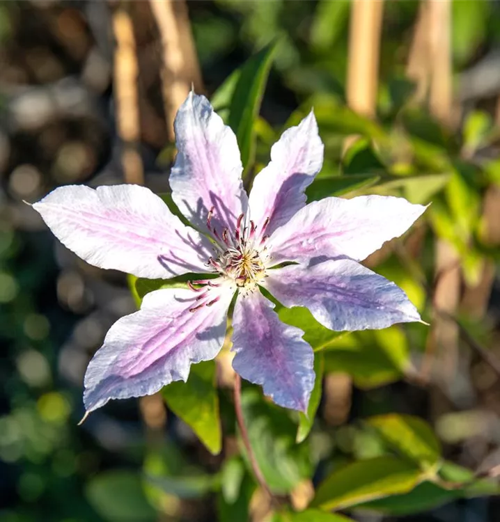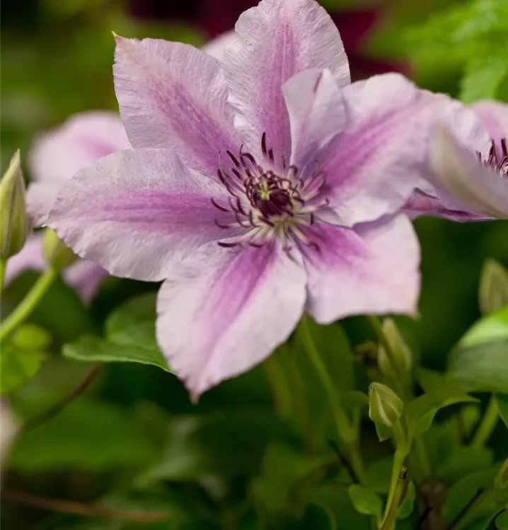 Blütenfarbe: hellrosa, karminrote Streifen; Blütezeit: